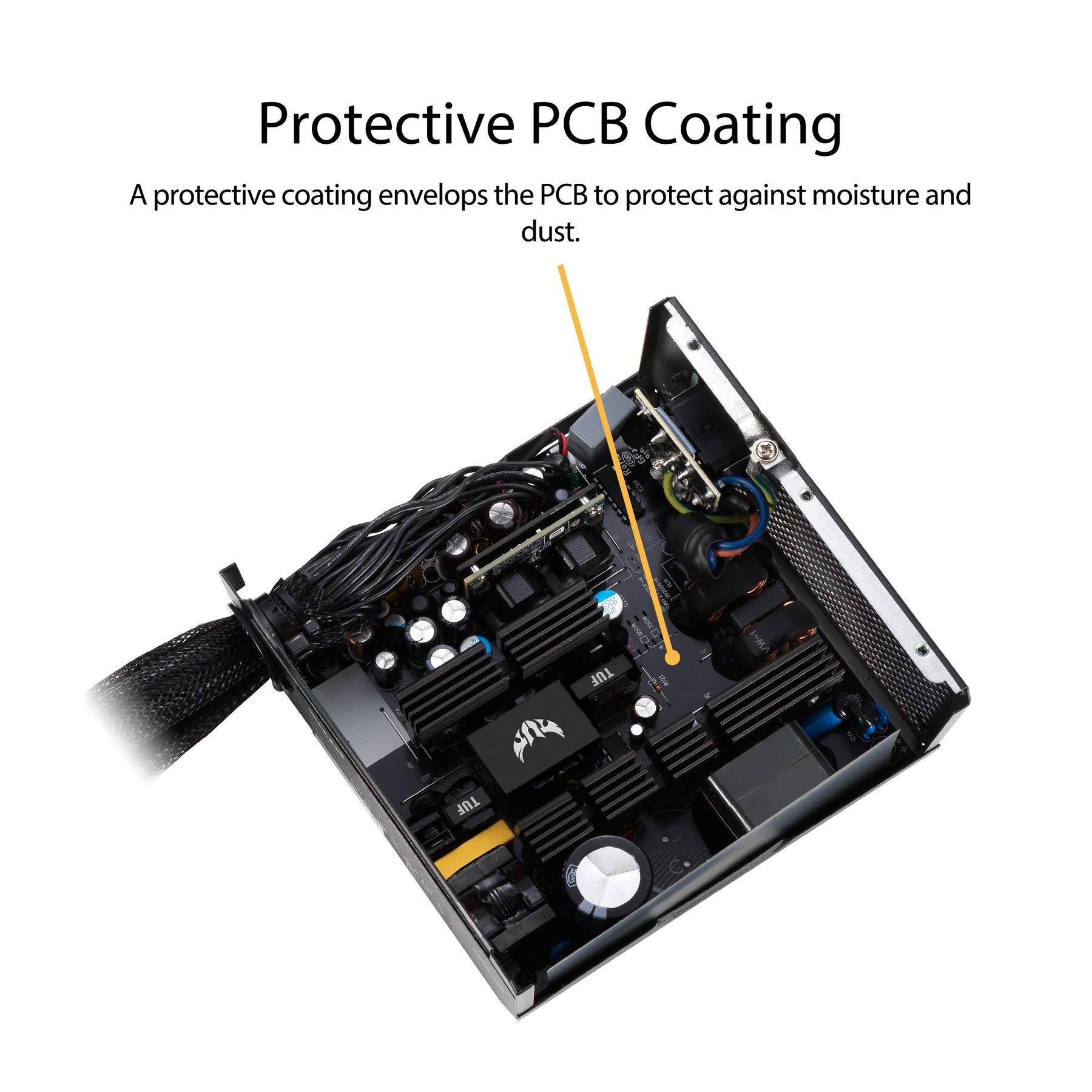 Einzelheiten: Die Netzteile der TUF-Gaming-Serie vereinen Komponenten in Militärqualität und eine robuste Kühllösung zu einer Leistungsplattform, auf die du dich verlassen kannst. Hochwertige Kondensatoren und Spulen werden unzähligen Tests unterzogen, einschließlich extremer Temperatur- und Vibrationsprüfungen, um sicherzustellen, dass sie die strengen militärischen Spezifikationen erfüllen. Ein Axial-Tech-Lüfter mit Doppelkugellager-Design bietet eine längere Laufzeit als andere Lüftertypen, wodurch die Lebensdauer des gesamten Produktes erhöht wird. Dieses Netzteil eignet sich perfekt für den Einbau in ein TUF-Gaming-System oder einen Selbstbau-PC, der auf Jahre hinaus für anspruchsvolle AAA-Spiele ausgelegt ist.