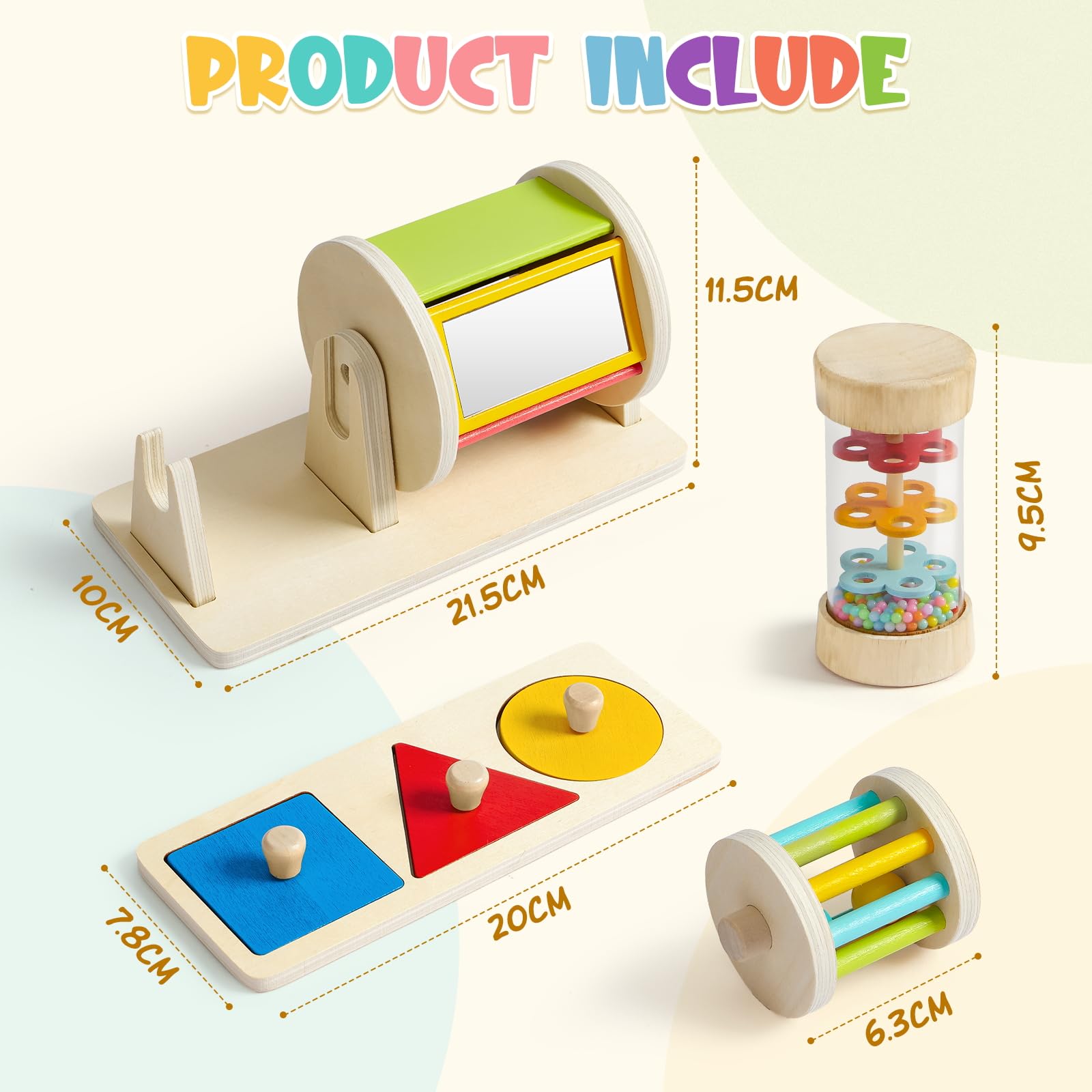- 💡MONTESSORI SPIELZEUG BABY: Dieses montessori sensorik spielzeug für baby enthält 3 spielzeuge: Spinning drum baby, holzform steckpuzzles und eine regenmacher baby. Jedes holzspielzeug wird sorgfältig aus hochwertigem holz gefertigt, um sicherheit und haltbarkeit zu gewährleisten. Montessori spielzeug ermutigt ihr baby, selbstständig zu erforschen, zu lernen und kreativität zu entwickeln. Baby kann durch schütteln und schlagen dieser spielzeuge spaß finden und neue sensorische stimulation erhalten.