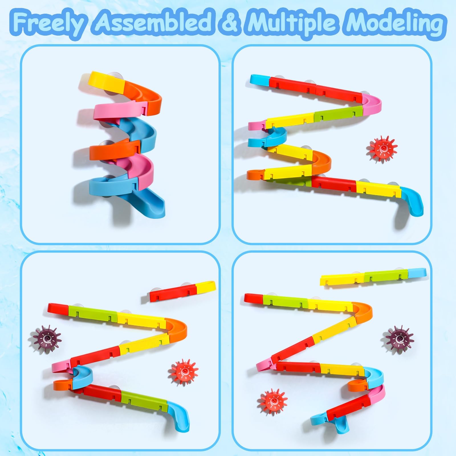 Badespielzeug Badewannenspielzeug Kinder Badewannen Spielzeug ab 3 4 5 Jahre, Murmelbahn Kugelbahn Badewanne Wasserspielzeug Kinder mit Saugnäpfe, Badespaß Geschenk Mädchen Junge (38 Stück)