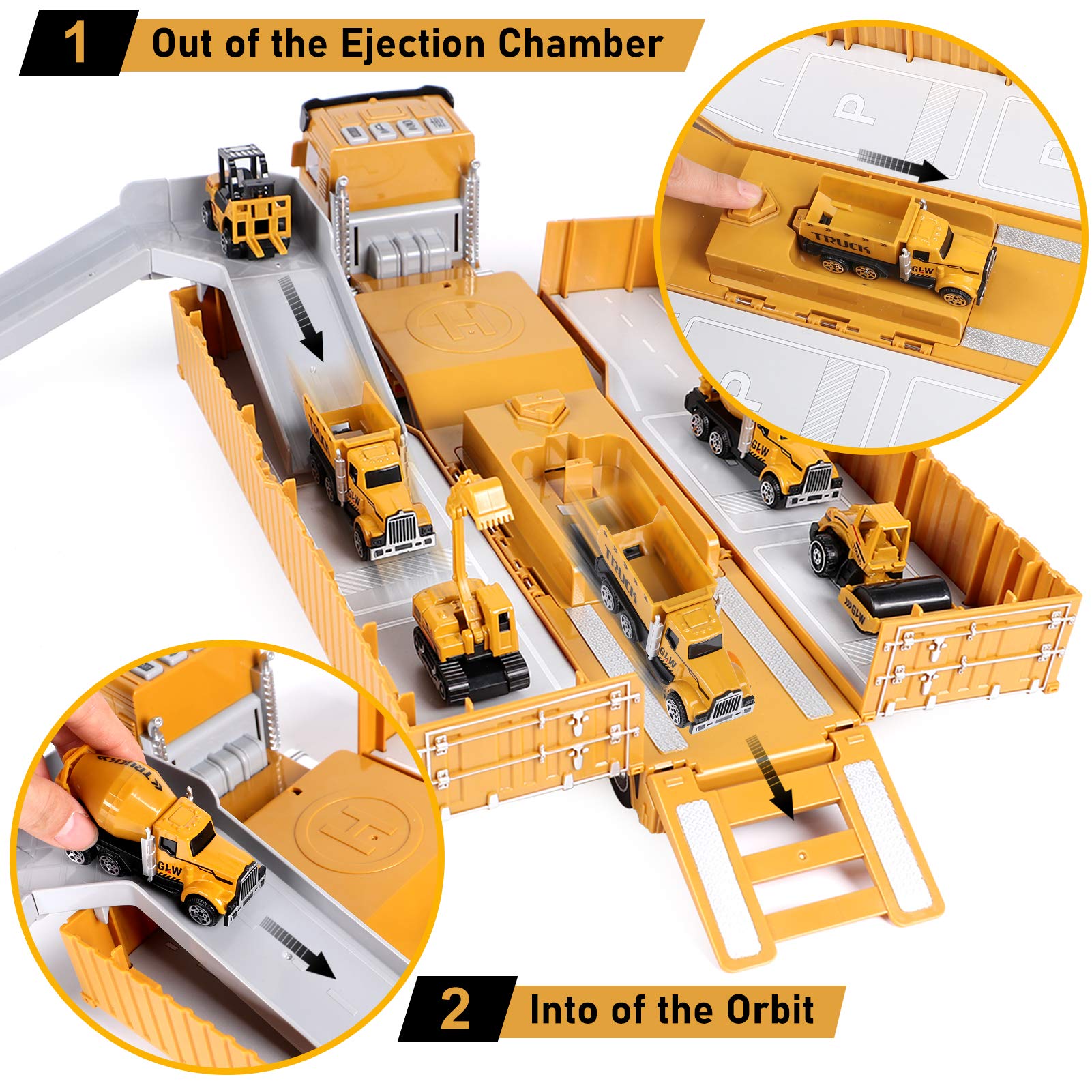 • Lernspielzeug: Der Gabelstapler, der Kran, der Bulldozer, die Dampfwalze, die Müllkippe, der Betonmischer und der Bagger werden mit ihren beweglichen Arbeitsteilen realisiert. Ihre Kinder entwickeln automatisch ihre Denkfähigkeiten, Hand-Auge-Koordination, grobmotorischen Fähigkeiten und kognitiven Prozesse.