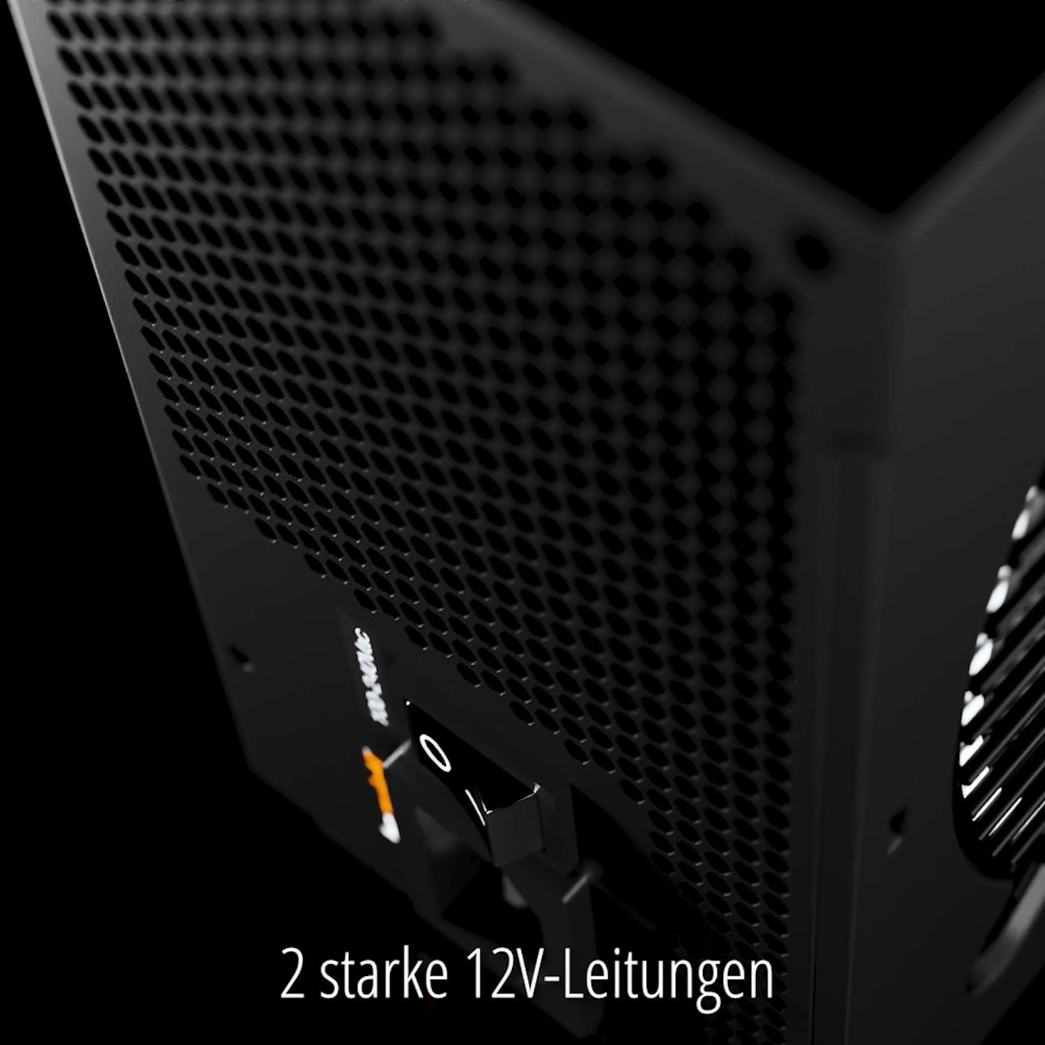 • Pure Power 12 M bietet 550W an kontinuierlicher Leistung auf 2 unabhängigen 12V-Schienen. Selbst wenn die Grafikkarte über kurze Zeiträume überhöhte Leistung abruft: Das Pure Power 12 M 550W kann Lastspitzen bis zum doppelten der Nennlast ohne Probleme verarbeiten.