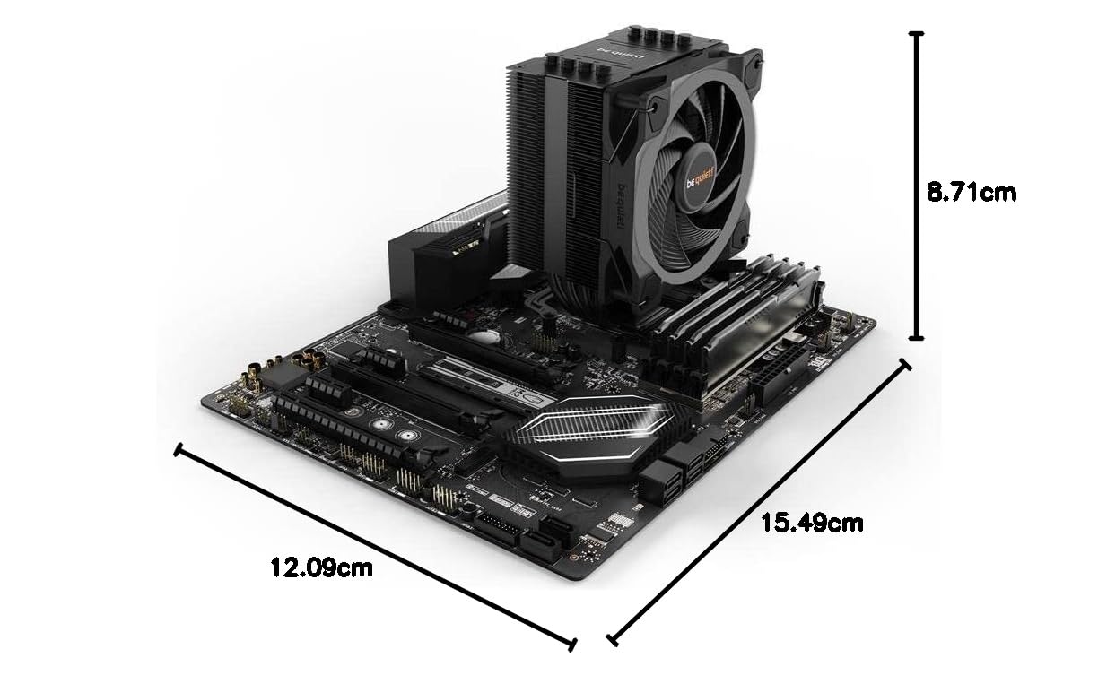 - Durch sein asymmetrisches Design ist der Pure Rock 2 FX Black passend für fast jede Konfiguration und eine ganze Reihe verschiedener Installationsvarianten. Dank seines komfortablen Montage-Systems lässt er sich vollständig von oben auf das Mainboard verbauen.