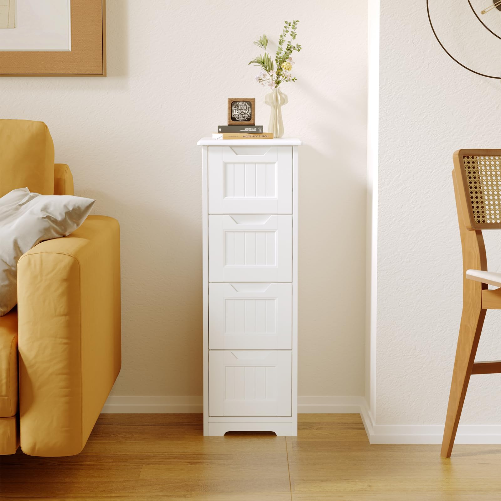 - 【Voll funktionsfähig】 Mit klassischem Design und großzügigem Stauraum lässt sich die kompakte Kommode problemlos in Ihr Schlafzimmer, Badezimmer, Wohnzimmer, Flur oder sogar Büro integrieren. Der offene Bereich oben kann als zusätzlicher Stauraum für Lampen, Bücher und Wecker genutzt werden, während vier Schubladen für die organisierte Aufbewahrung kleiner Gegenstände sorgen, sodass diese außer Sichtweite und griffbereit bleiben.