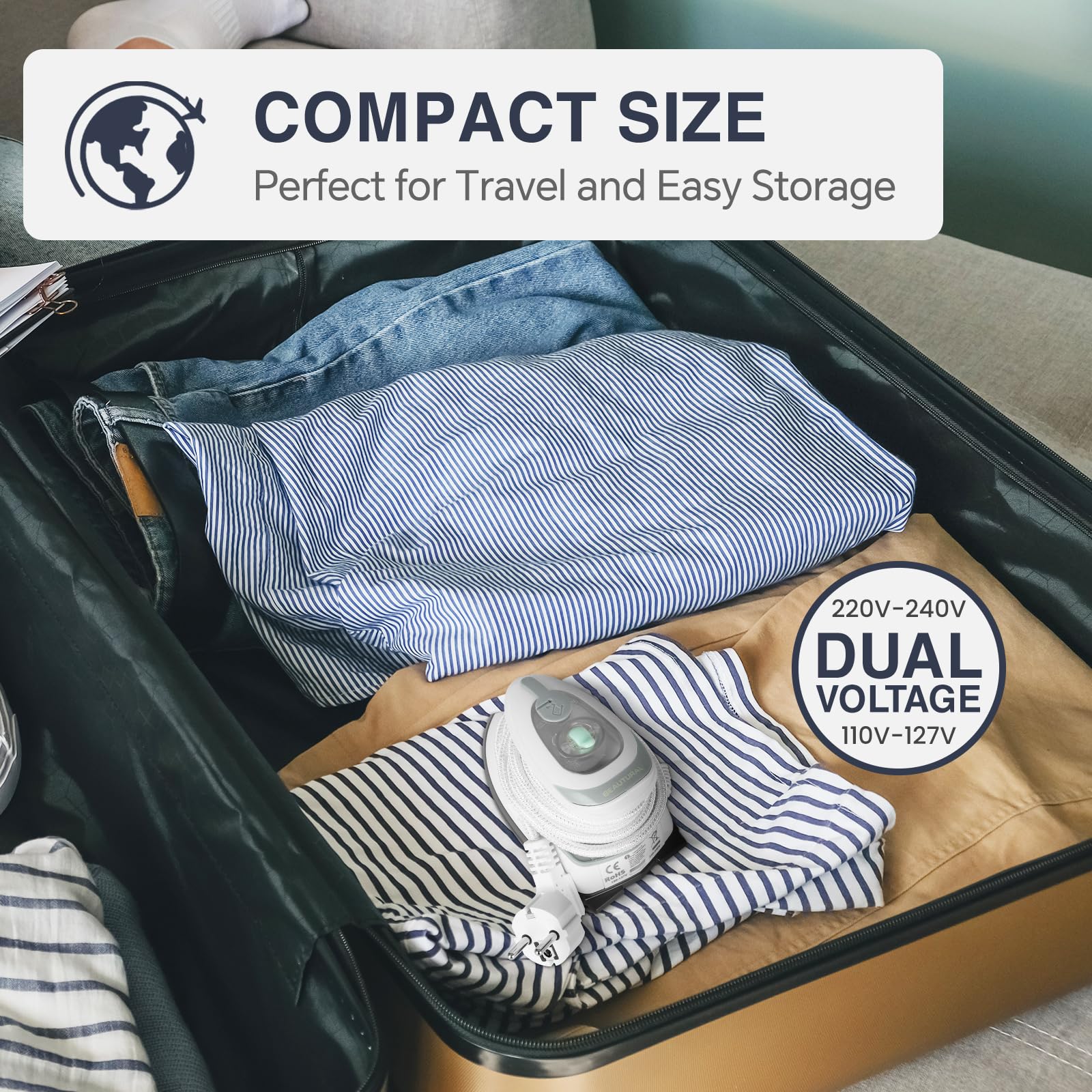 BEAUTURAL Mini Reisebügeleisen mit Umschaltbarer Spannung 220V/120V Dampfbügeleisen Trockenbügeleisen mit Anti-Tropf-Funktion 3 Temperatureinstellungen leicht für Näharbeiten, Reise
