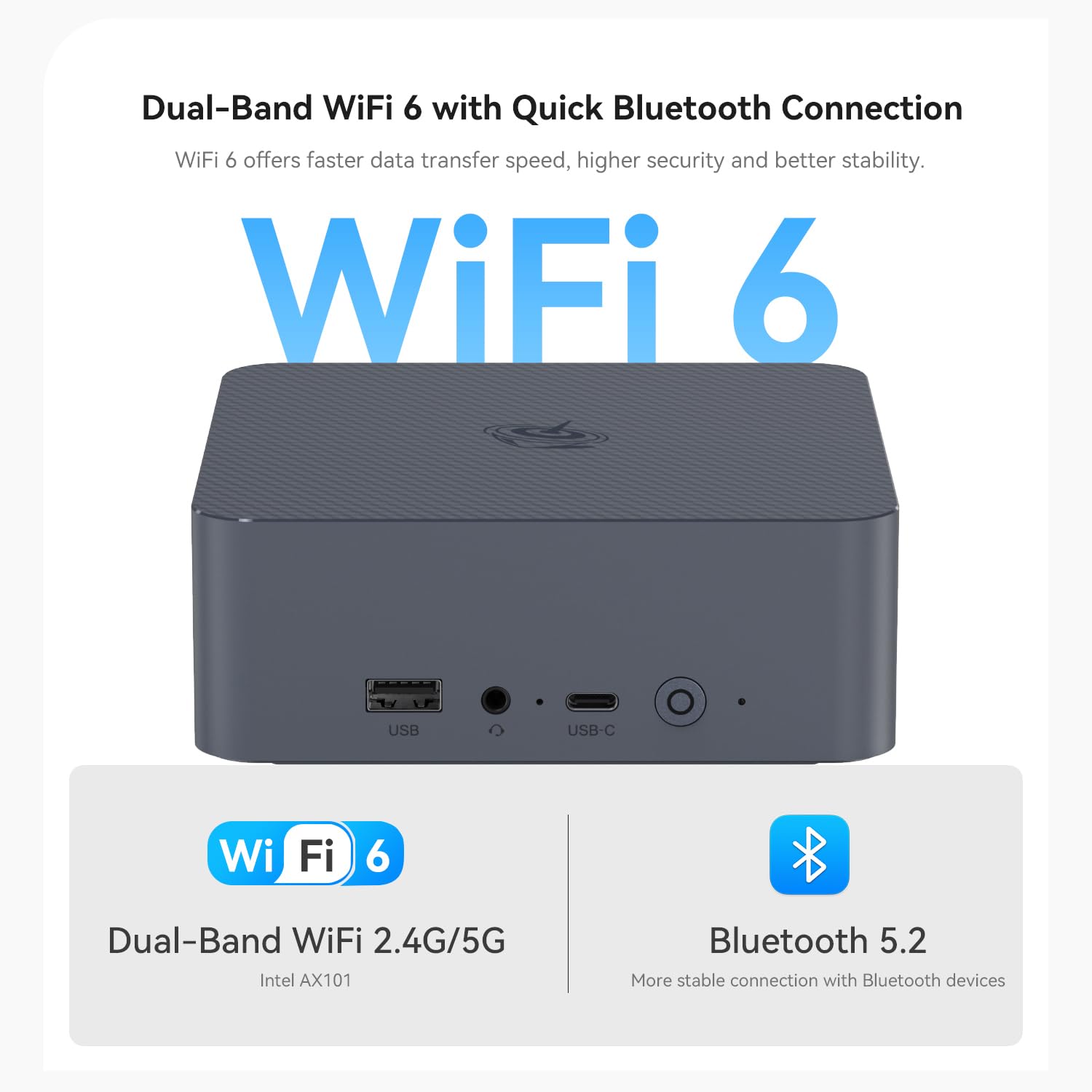 • ⚡【WiFi6/BT5.2 & Dual 1000M LAN 】Beelink 1220P ist mit einem Dual-Gigabit-Ethernet-Port ausgestattet, der eine schnelle und zuverlässige Datenübertragung ermöglicht. Und unterstützt WiFi 6 und Bluetooth 5.2 für schnellere und stabilere Datenübertragung.