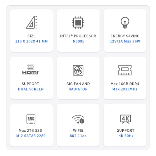 - 【Zusätzliche Funktionen und kompakte Mini-Größe】 Beelink Mini-PC N5095 Mini S unterhaltungsbegleiter sein, placed anywhere you want. You can place it on a table, mount it on the back of a monitor or even take it with you on trips and business trips. Zusätzlich hat dieser Mini-PC andere spezielle Funktionen mit Unterstützung für PXE Boot, RTC, WOL.