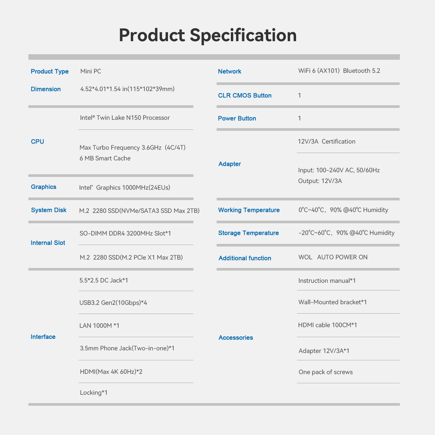 - 🔥【Intel Twin Lake-N150】 Der Beelink Mini-PC ist mit Intels neuestem Prozessor Twin Lake-N150 ausgestattet, mit einer maximalen Turbofrequenz von bis zu 3,6 Ghz (4C/4T). Wenn Sie auf der Suche nach einem leisen und stromsparenden PC für die tägliche Arbeit und Unterhaltung sind, ist dieser N150-Prozessor perfekt für Sie.