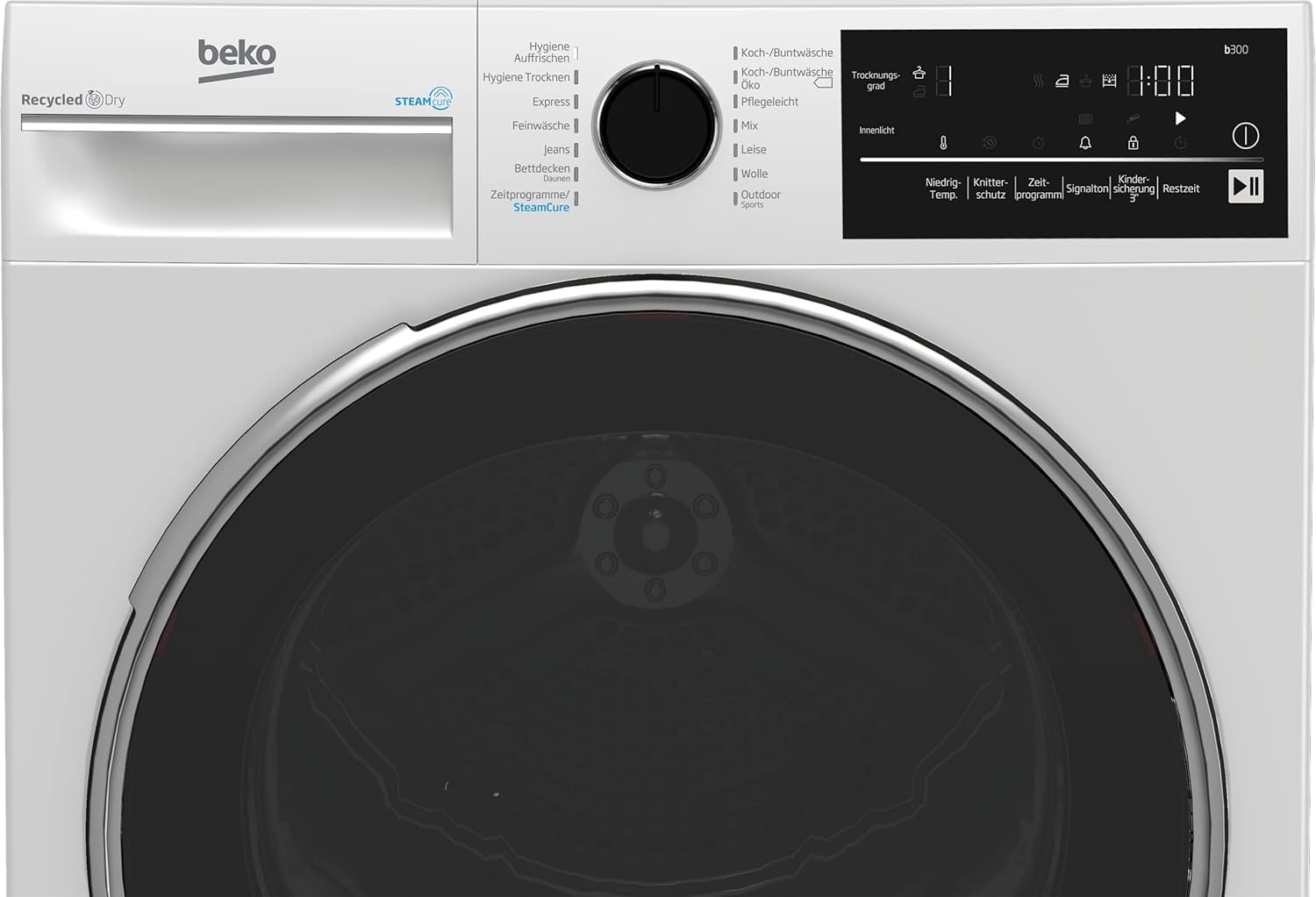 Beko B3T42240S b300 Wärmepumpentrockner, 8 kg, allergikergeeignet, Hygiene Trocknen & Hygiene Auffrischen, SteamCure - Dampffunktion, 14 Programme, Weiß
