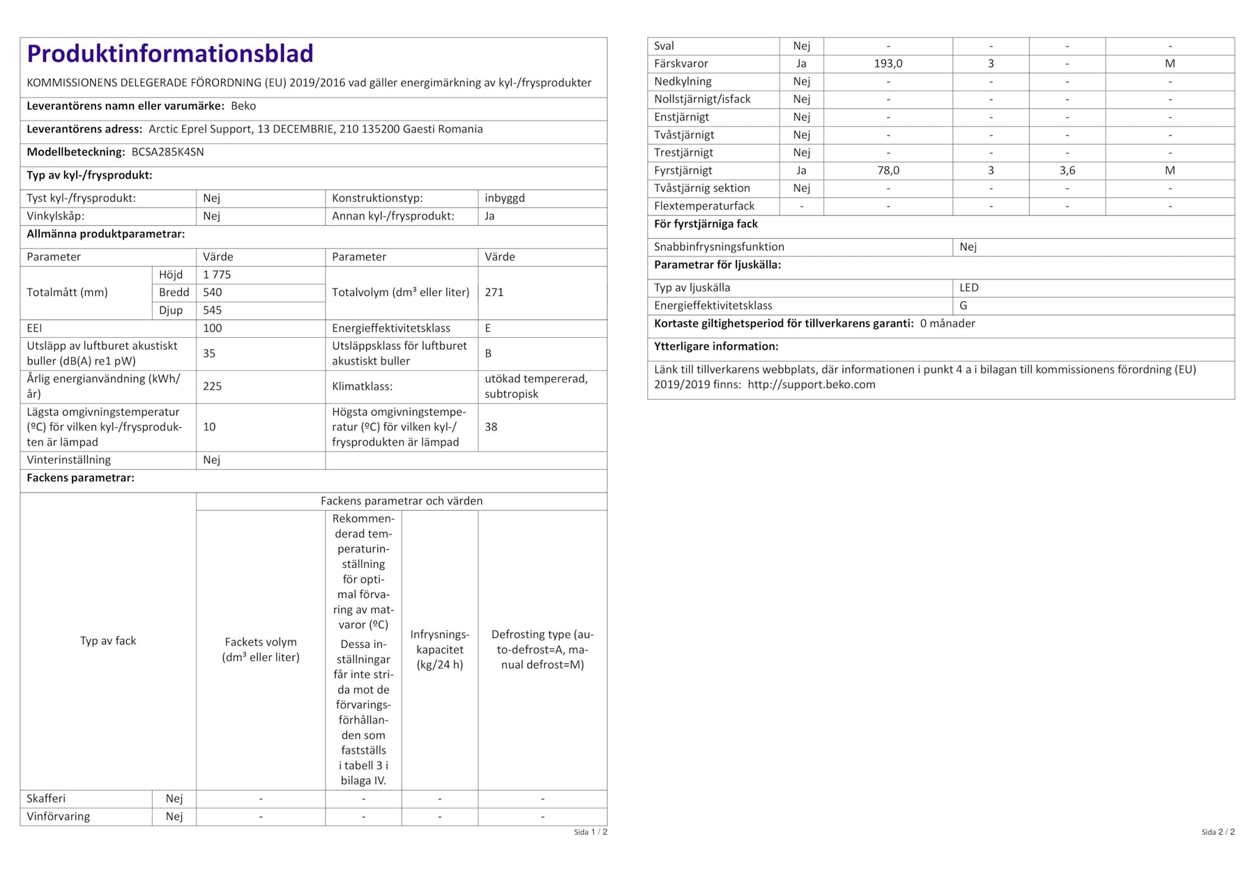 Einzelheiten: Beko BCSA285K4SN Integrierbare Kühl-/Gefrierkombination. Maße (H x B x T in cm): HxBxT: 177,5 x 54 x 54,5 cm . Geräuschpegel (dB) : 35 dB. Funktionen- Integrierbare Kühl-/Gefrierkombination; 0°C-Zone; Schlepptürtechnik ; Nische: 178 cm ; 35 dB