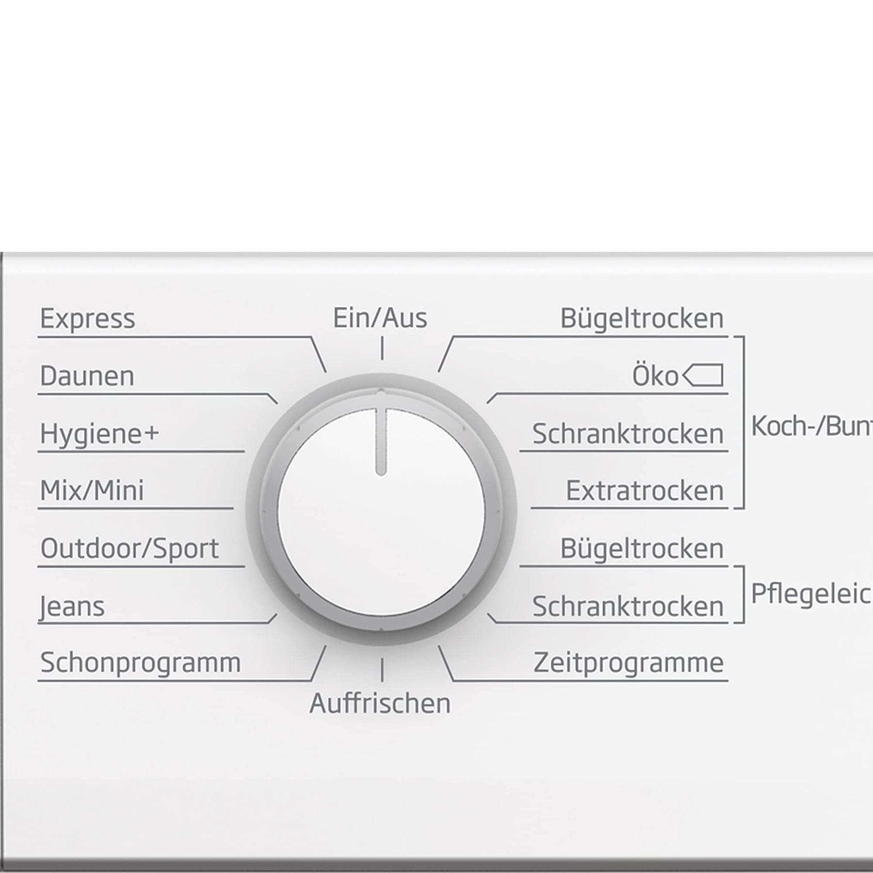 Koch-/Buntwäsche Schranktrocken Plus, Mini, Koch-/Buntwäsche Extratrocken, Koch-/Buntwäsche Bügeltrocken, Koch-/Buntwäsche Schranktrocken, Pflegeleicht Schranktrocken, Pflegeleicht Bügeltrocken, 45 min, 30 min, Baby Protect, Sport, Schonprogramm, Jeans, Hemden,Auffrischen, Express
