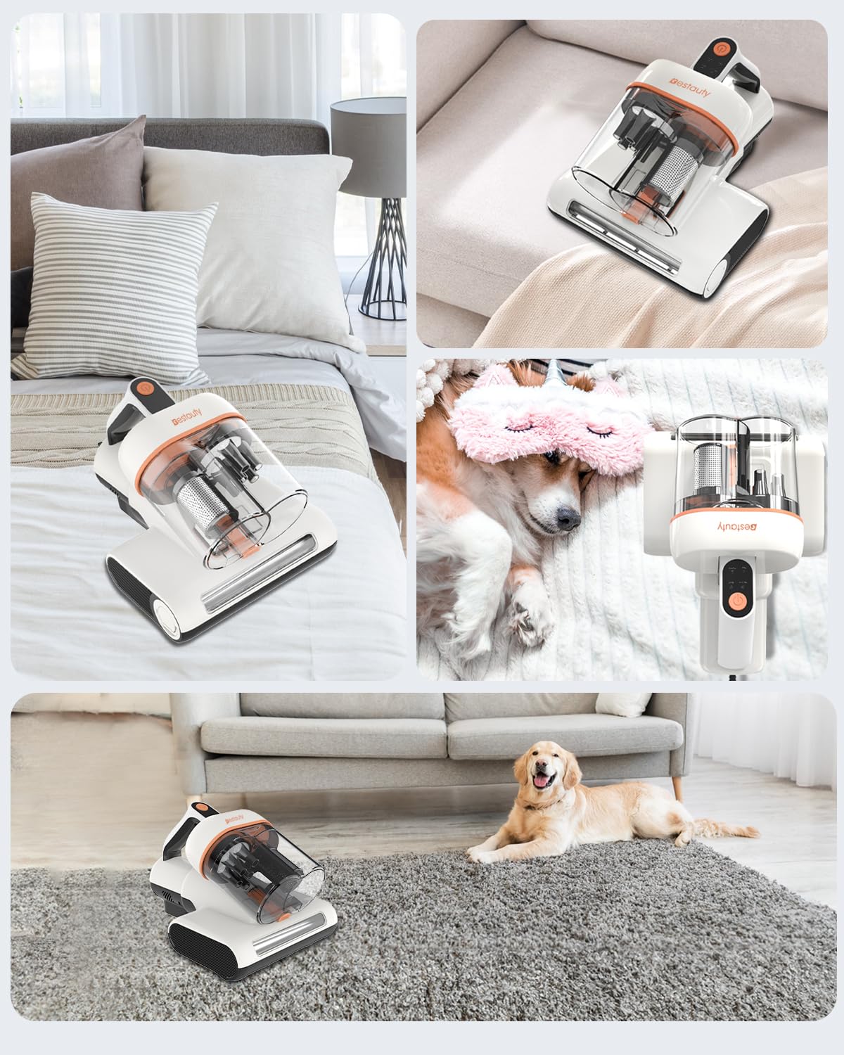 - Starke Saugkraft, tiefe Reinigung: Bestauty CY203 Milbensauger, ausgestattet mit einem 500W-Motor, bietet eine starke Saugkraft von 7-16 kPa und schlägt Matratzen tief mit 30.000 Umdrehungen pro Minute, um Milben in der Tiefe von Matratzen und Sofas vollständig zu entfernen. Es schützt die Oberfläche von Matratzen und Sofas und spart Ihnen Zeit und Energie.