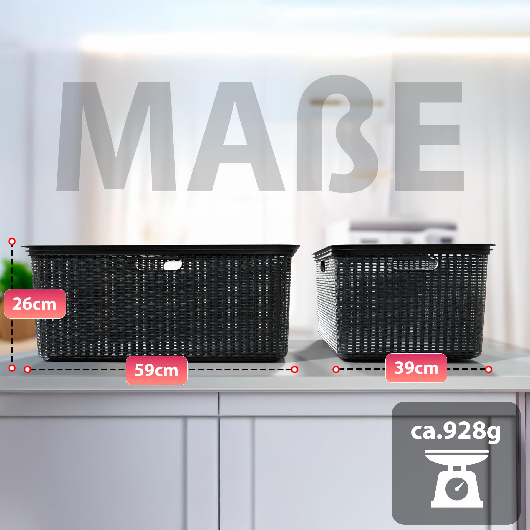 Einzelheiten: BigDean Wäschekorb 59x39x26 cm Rattan Design – Wäschewanne Made in Germany