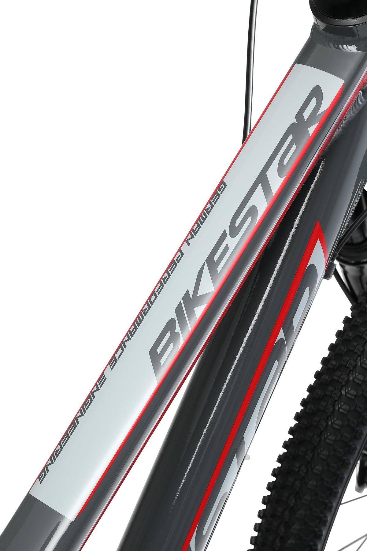 BIKESTAR Hardtail Aluminium Mountainbike Shimano 21 Gang Schaltung, Scheibenbremse 26 Zoll Reifen | 16 Zoll Rahmen Alu MTB | Grau & Rot