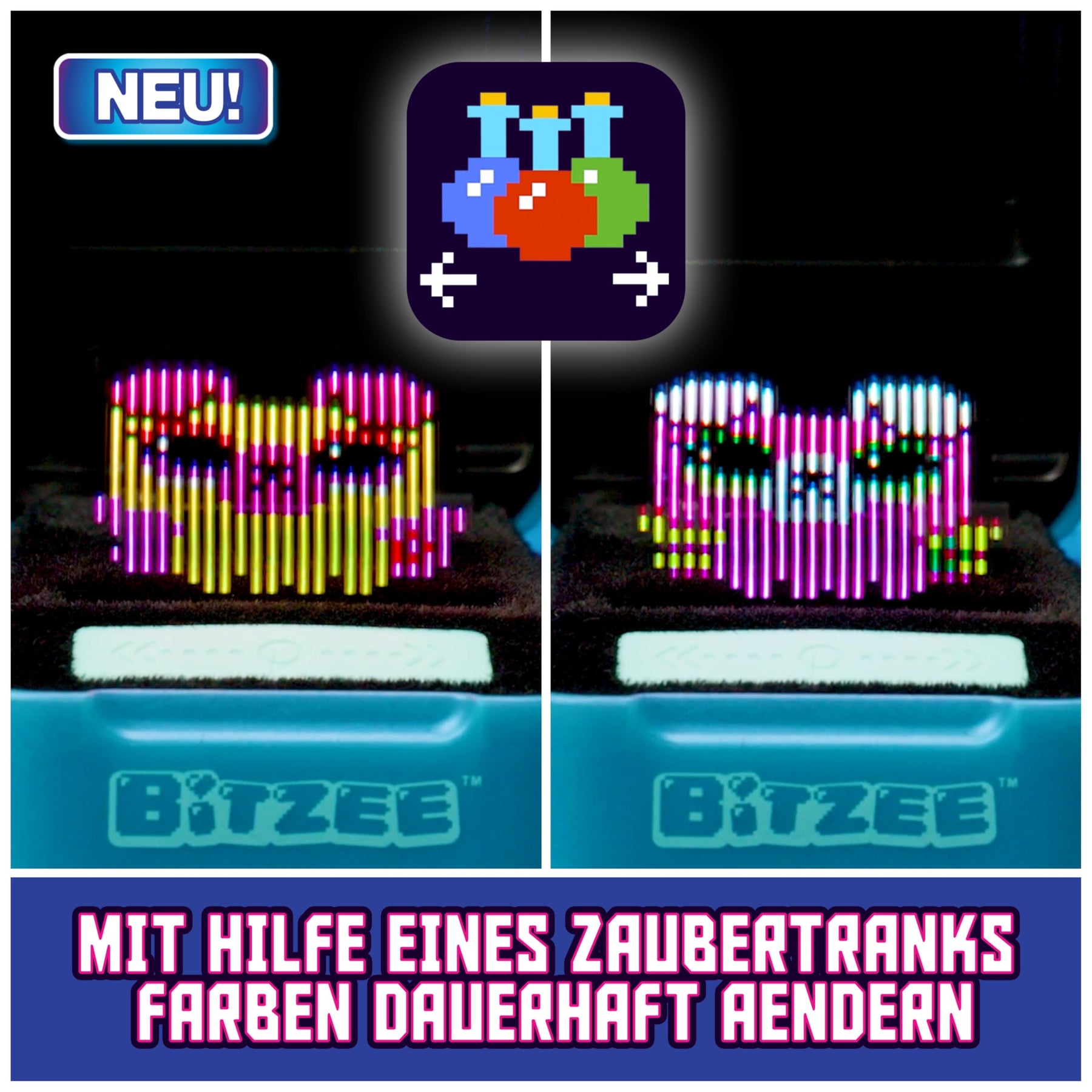 Die Bitzee Welt wächst weiter mit Bitzee Magicals - den digitale magischen Wesen, die man wirklich anfassen kann. Nach dem Erfolg des ersten Bitzee, beherbergt die Bitzee Magicals, die neue Version des interaktiven Spielzeugs von Spin Master beherbergt 20 magische Wesen, die in jeder Box durch Spielen zu entdecken sind. Die interaktiven Bitzee-Weseb reagieren auf Berührungen am beweglichen Display und Bewegungen wie Neigen, Anheben und Schütteln oder Wischen über die Touchpad Leiste. Jedes Bitzee beginnt als Baby und benötigt Liebe, Pflege und Fürsorge, um sich entwickeln zu können. Je mehr man mit den magischen Bitzee Wesen spielt und interagiert, desto mehr gibt es zu entdecken. Man kann sie füttern und mit ihnen spielen, sie in den Schlaf wiegen, säubern und ihnen durch Streicheleinheiten Liebe schenken. Außerdem kannst du dein Bitzee mit der Funktion Zauberstab nun auch für kurze Zeit verzaubern. Jedes Bitzee wächst vom Baby zum Erwachsenen heran und wird nach noch mehr Aufmerksamkeit und Zuneigung zum Super Bitzee. Wenn sich ein Wesen zum Super Bitzee entwickelt hat, bekommt man einen Edelstein geschenkt, welcher zerbrochen werden muss, um das nächste magische Bitzee zu entdecken. Außerdem wird mit jedem Super Bitzee ein Mini Spiel freigeschalten, durch welches man Zaubertränke erspielen kann, um dauerhaft die Farbe der magischen Wesen zu ändern. Durch die vielen Spiel- und Interaktionsmöglichkeiten sorgt Bitzee für den ultimativen Spielspass. Das kompakte digitale Haustier zum Anfassen kann überall hin mitgenommen werden. Es ist das ideale Geschenk zu jedem Anlass oder Geburtstag für Mädchen, Jungen und alle Kinder ab 5 Jahren und begeistert durch den 8-bit Look der Bitzee Wesen Erwachsene und Fans von Spielen der 90er Jahre gleichermaßen.