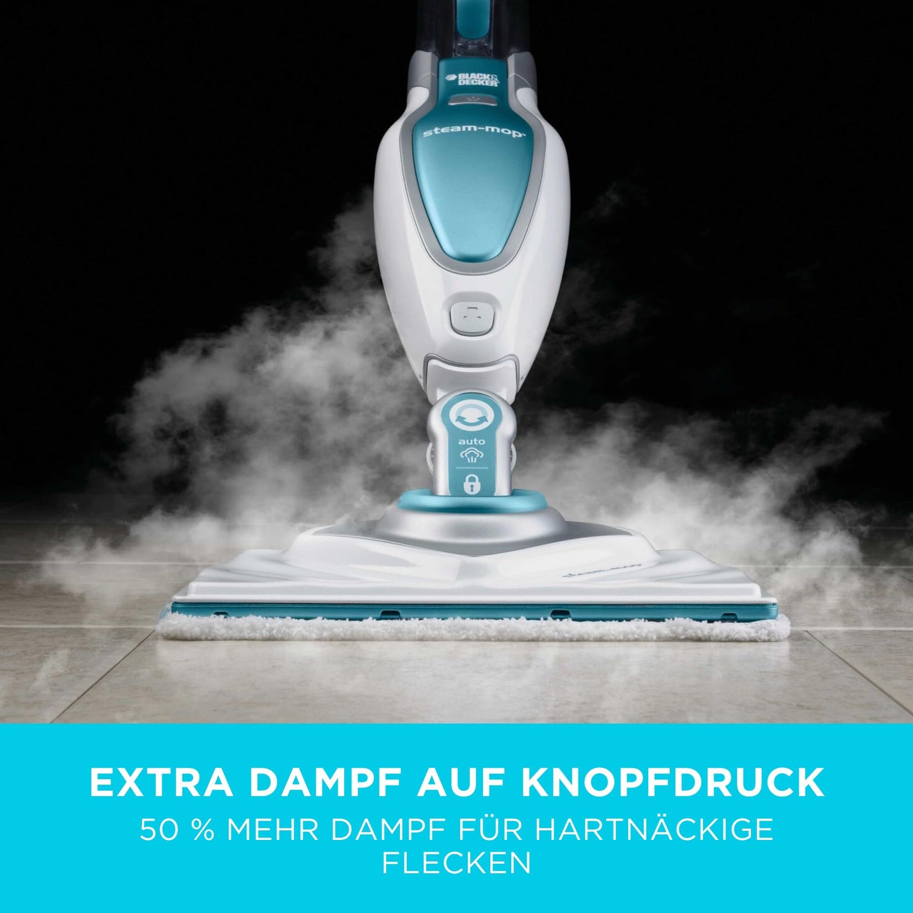 Einzelheiten: "Der BLACK+DECKER Steam 1600W Mop Dampfreiniger mit AutoSelect und Delta-Reinigungsfuß ist eine moderne Reinigungslösung, die die Bodenpflege spielend leicht macht. Mit leistungsstarken 1600W entfernt der Dampfbesen mit Hilfe von Wasserdampf mühelos hartnäckige Fettrückstände und Schmutz. Gleichzeitig beseitigt er 99,9% der haushaltsüblichen Bakterien und Keime. Die innovative AutoSelect-Technologie sorgt für die richtige Dampfmenge passend zur Oberfläche und hinterlässt in Sekundenschnelle saubere, trockene und streifenfreie Böden.