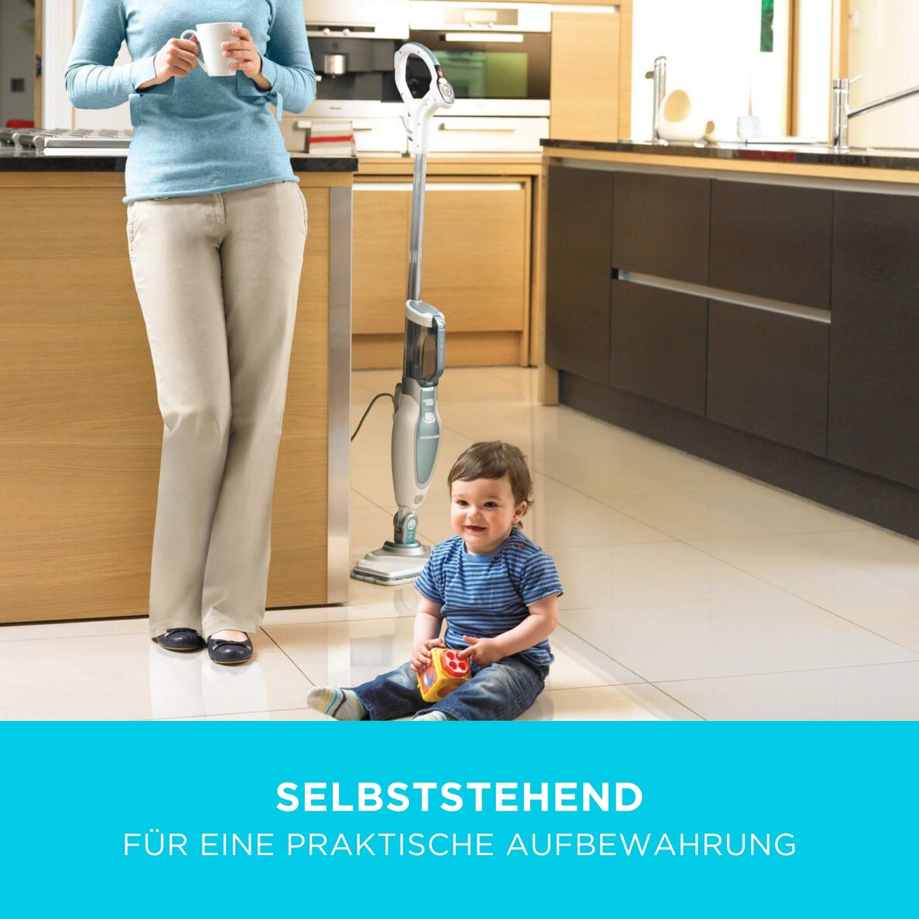 einschließlich Fliesen, Linoleum, Laminat und mehr. Er ist das ideale Gerät für eine chemiefreie, hygienische Reinigung."