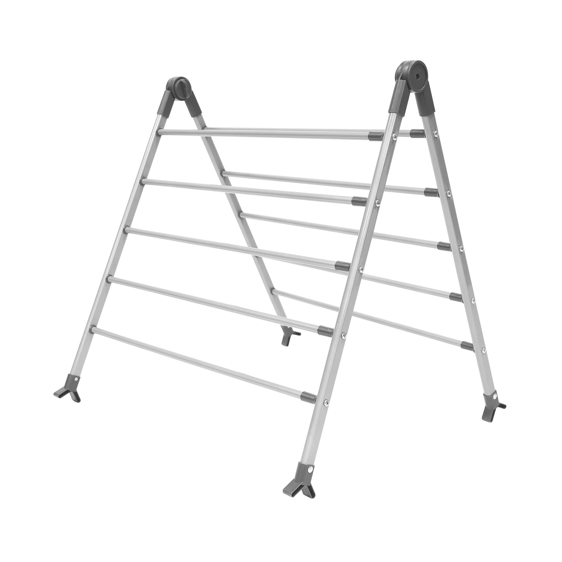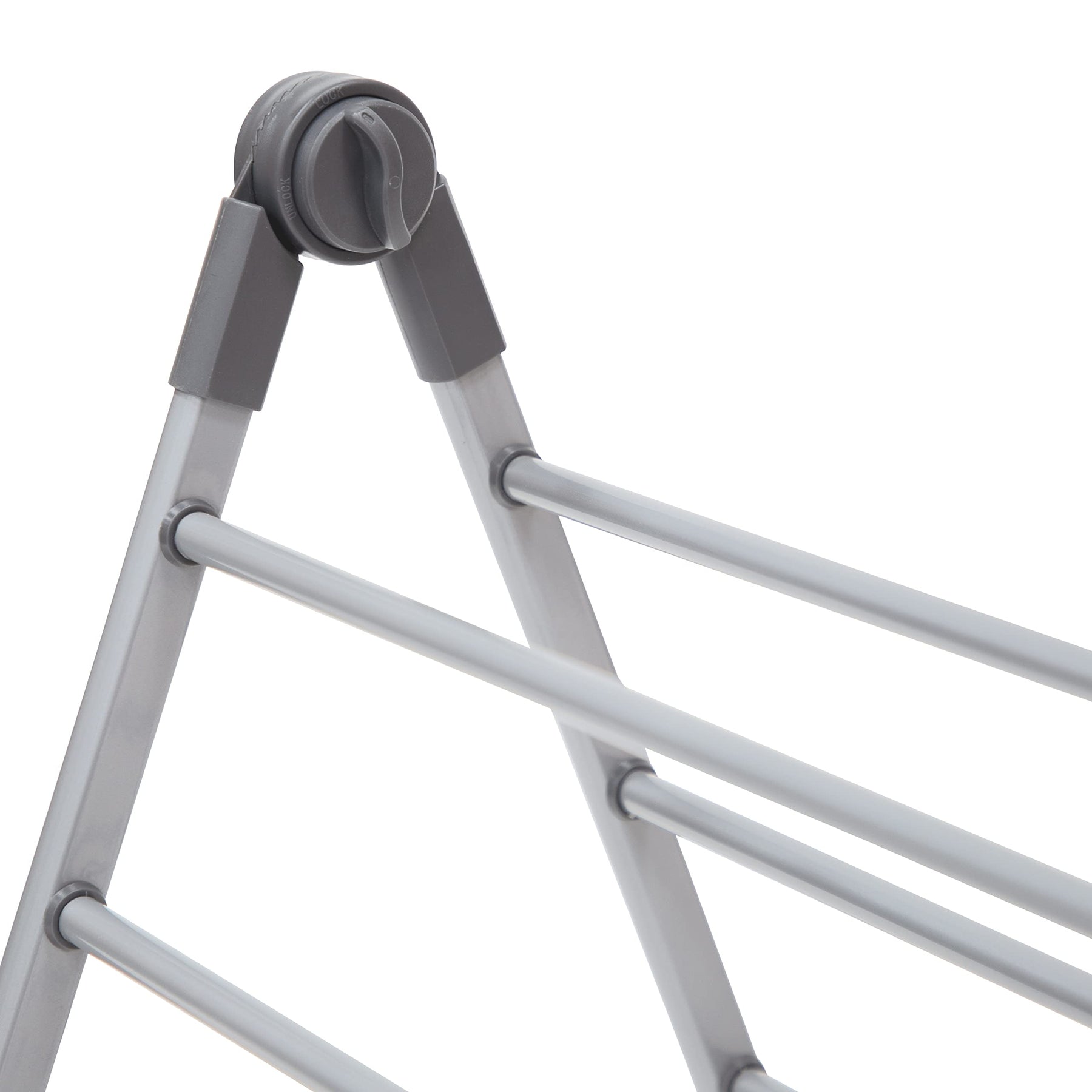 Einzelheiten: Der ausziehbare Wäscheständer von Black + Decker ist ideal zum Trocknen von vielen Kleidungsstücken auf einmal und spart Platz auf dem Boden, der von einem normalen Trockner benötigt wird. Der Wäscheständer kann von einer minimalen Länge von 56,5 cm bis zu einer maximalen Länge von 106,5 cm verlängert werden. Dadurch passt er über die überwiegende Mehrheit der Badewannen auch mit verschiedenen Breiten. Das Gestell des Trockners kann verriegelt und entriegelt werden, um Stabilität im Stehen zu gewährleisten, egal ob über einer Badewanne oder auf einer Oberfläche wie einem Balkon. Sobald die Trocknung abgeschlossen ist, kann sie ordentlich zusammengefaltet werden, um die Lagerung zu erleichtern. Jede der 10 Trockenstangen bietet eine Gesamtfläche von 5,6 m zum Trocknen von Kleidung, Kleidung und mehr. Die Stangen halten ein maximales Gewicht von jeweils 0,8 kg, für eine Gesamtbelastung von 8 kg über den gesamten Trockner.