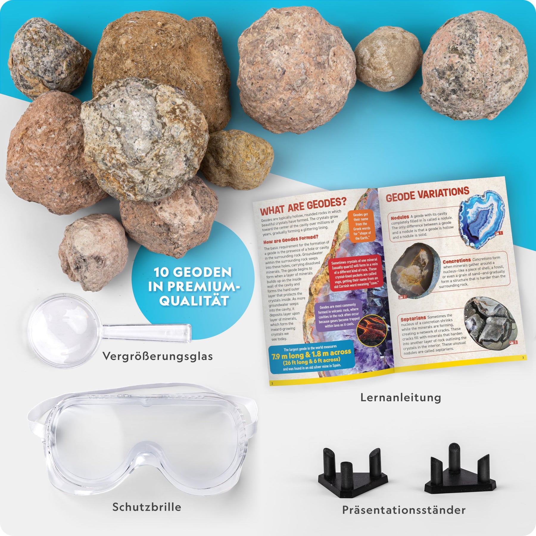 - ENTDECKE KRISTALLSCHÄTZE – Öffne diese Steine und entdecke faszinierende Kristalle! Geologie wird nicht spannender als beim Aufbrechen von Geoden. Dieses tolle MINT-Set ist ein ideales Geschenk für Jungen und Mädchen!