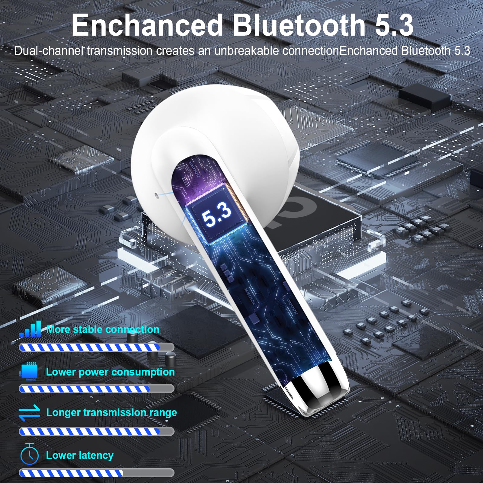 - HD-Klangqualität und ENC Kristallklare Anrufe: Der drahtlose headset bluetooth J52 ist mit einer 13MM großen Verbundmembran und einem eingebauten AAC/SBC-Codec-Chip ausgestattet, unterstützt die HIFI-Klangqualität. Speziell angefertigte Treiber mit geringer Verzerrung liefern knackige, klare Höhen und tiefe, satte Bässe. Die Drsaec in ear kopfhörer bluetooth verfügen über 4 Mikrofone und Technologie zur Unterdrückung von Umgebungsgeräuschen (ENC) ermöglichen hohe Anrufqualität.