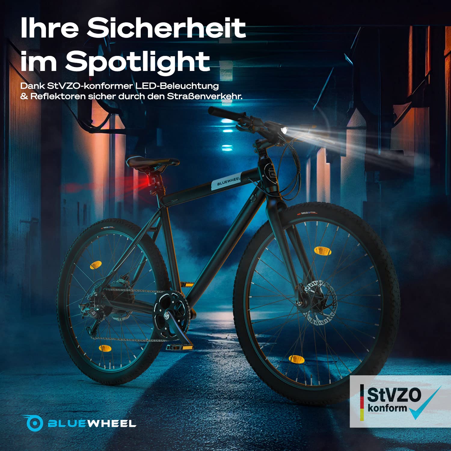- 𝗦𝘁𝗩𝗭𝗢-𝗞𝗢𝗡𝗙𝗢𝗥𝗠 𝗨𝗡𝗧𝗘𝗥𝗪𝗘𝗚𝗦: Fahren Sie auf der sicheren Seite Mithilfe des hochwertigen StVZO-konformen Zubehörs für 100% Verkehrssicherheit. So ergänzen Reflektoren und helle Leuchten das urbane Design des E-Fahrrads und bringen Sie auch in der Dunkelheit sicher ans Ziel – getreu dem Motto „sehen und gesehen werden“.