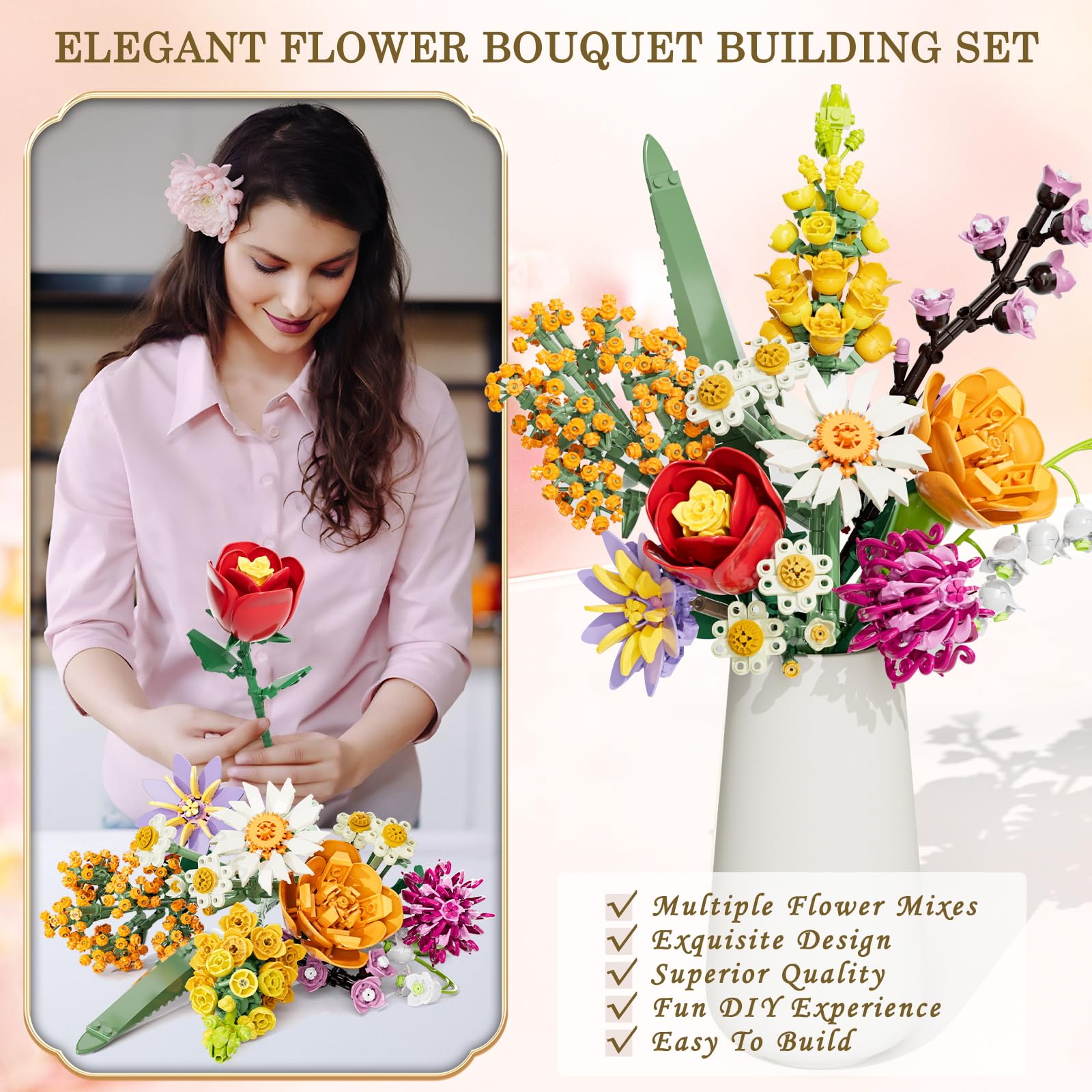 - Hohe Qualität und für jedes Alter geeignet - Unser Blumenstrauß ist aus hochwertigen Materialien gefertigt, bei denen jede einzelne Blume und jedes Blatt sorgfältig entworfen wurde, um die Eleganz der natürlichen Blumen perfekt nachzuahmen. Die Materialien sind sicher und ungiftig, so dass sie für alle Altersgruppen geeignet sind. Sie können den Strauß mit Ihrem Kind zusammenbauen und dabei eine fröhliche Bastelzeit genießen, oder Sie können ihn einfach selbst zusammenbauen!