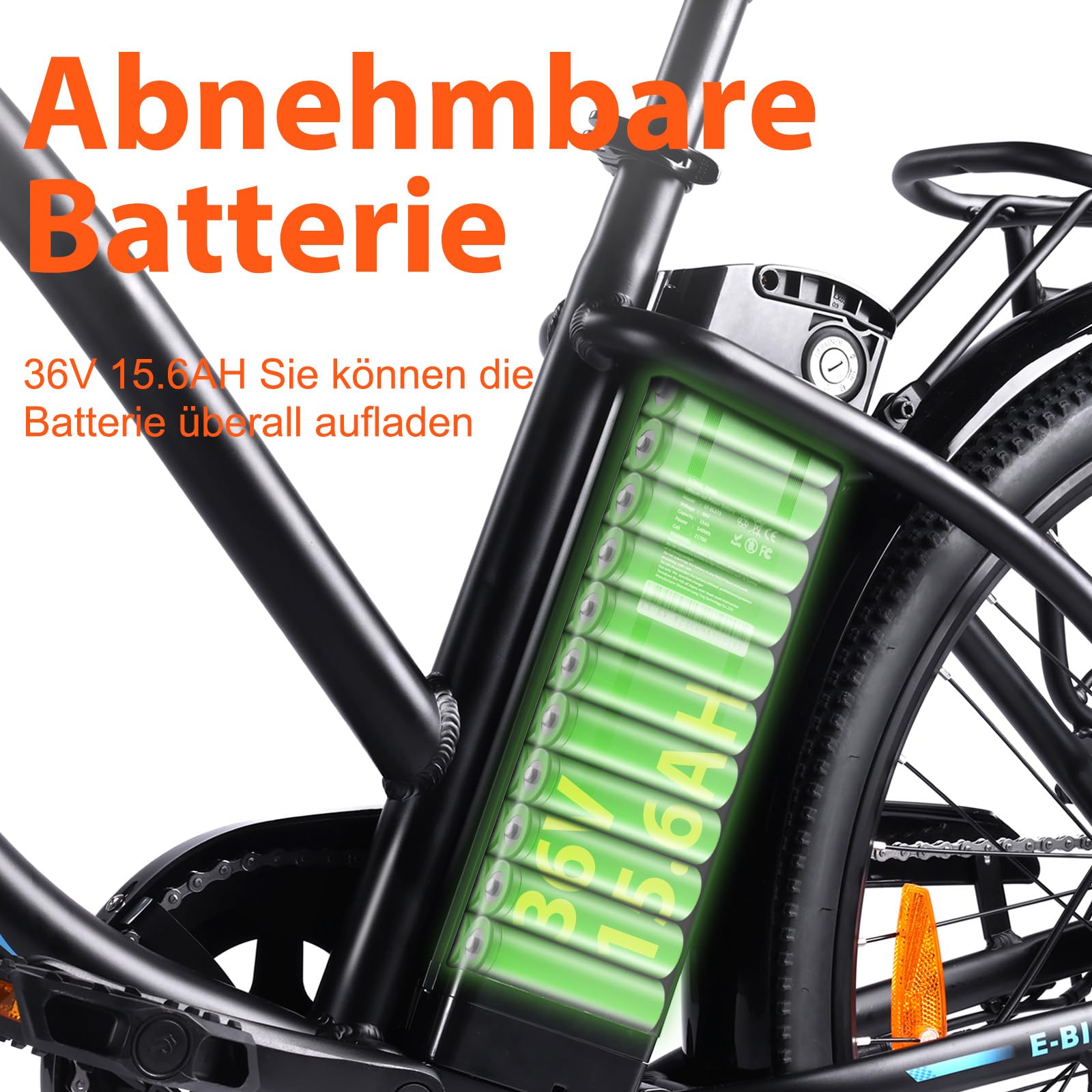 - 【Große Kapazität Batterie und lange Reichweite】 Dieses Bodywel A26 kommt mit einem leistungsstarken eingebauten abnehmbaren 561,6Wh 36V 15,6Ah Akku, der eine einzige Ladung bis zu 100 km* liefern kann - genug Saft für Ihren täglichen Lebensmitteleinkauf oder einfach nur zum Genießen des Abendradfahrens in Ihrer Nachbarschaft.