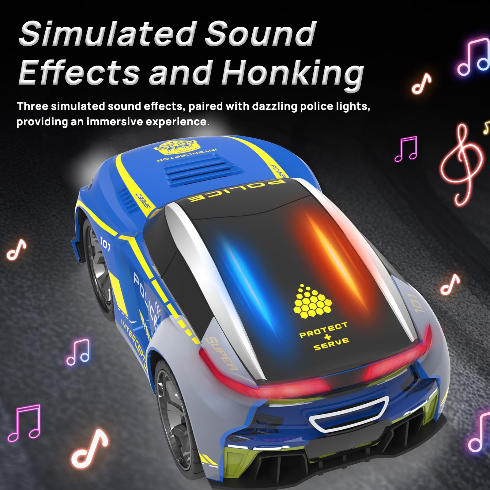 - Eingebaute wiederaufladbare Batterie: Dieses wiederaufladbare ferngesteuert Polizei auto wird mit einem 500mAh-Akku geliefert (die Fernbedienung benötigt 3 AAA-Batterien, die nicht im Produkt enthalten sind) und Typ-C-Ladung, Ihre Kinder können etwa 30 Minuten lang mit einer vollen Ladung spielen, was für lang anhaltenden Spaß sorgt. (Hinweis: Schalten Sie das Auto vor dem Aufladen aus, sonst wird der Akku nicht geladen).