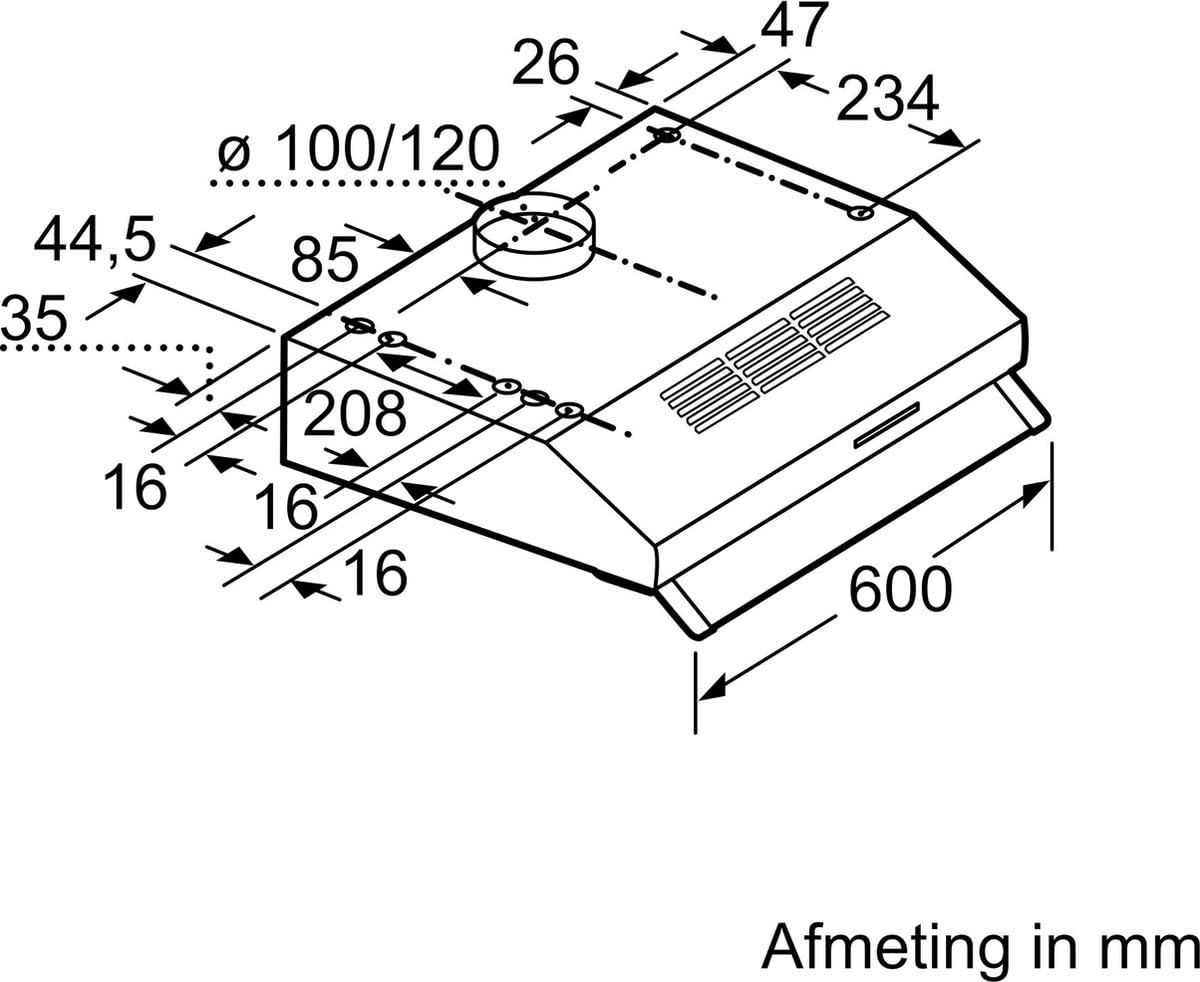 - Weitere Produktmerkmale: Energieeffizienzklasse D, hohe Luftleistung mit 1-motorigem Gebläse, 3 Leistungsstufen. Zur Montage unter einem Hängeschrank oder an der Wand.