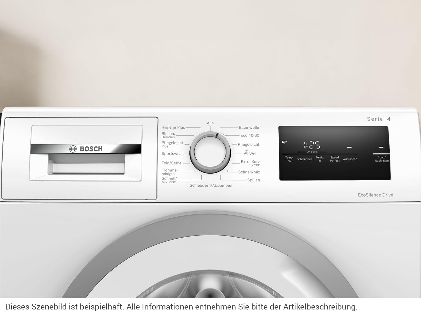 Einzelheiten: Bosch WAN28123 Serie 4 Waschmaschine, 7 kg, 1400 UpM, ActiveWater Plus - Maximale Energie- und Wasserersparnis, EcoSilence - Drive leiser und effizienter Motor, SpeedPerfect - schneller saubere Wäsche.