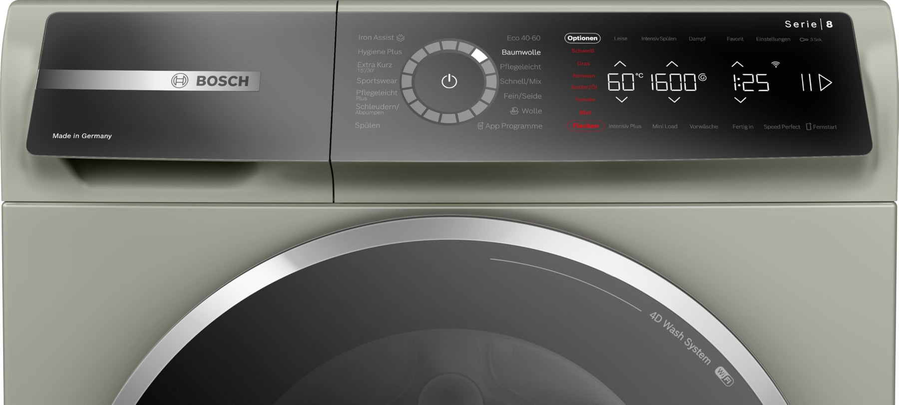 - Energieeffizienzklasse A und mehr: Diese Bosch Serie 8 Waschmaschine übertrifft die Energieeffizienzklasse A um 30 % und liefert perfekte Waschergebnisse.