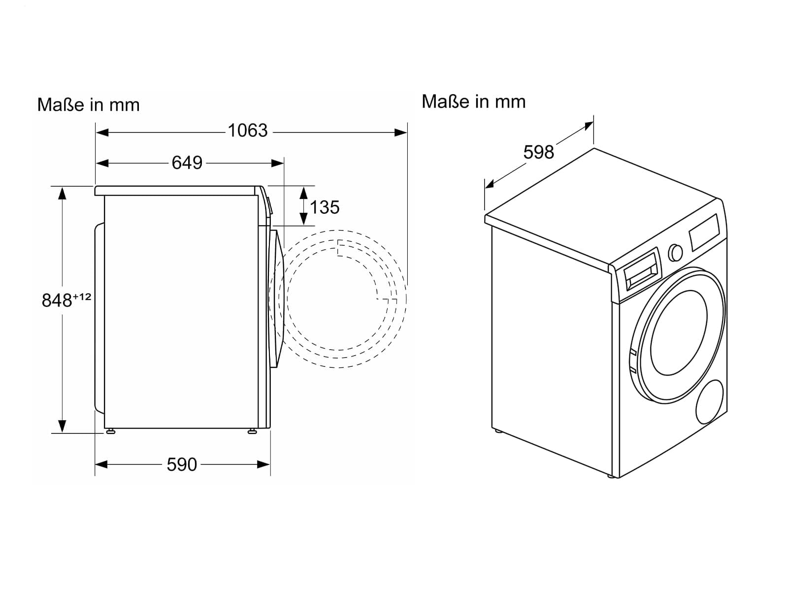 Höhe: 84.8 cm Breite: 59.8 cm Gerätetiefe: 59.0 cm Gerätetiefe inklusive Tür: 64.9 cm Gerätetiefe mit geöffneter Tür: 106.3 cm