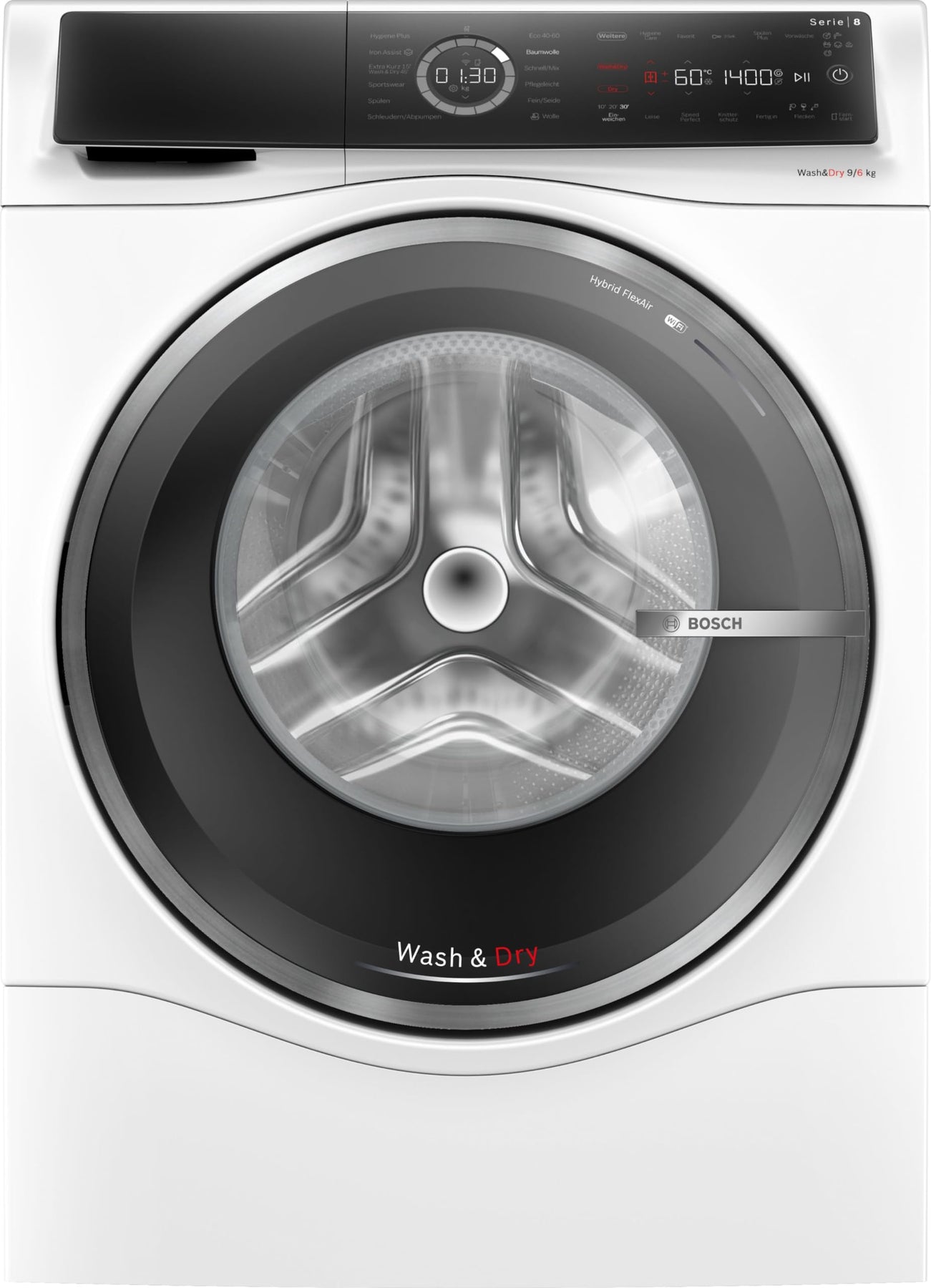 Einzelheiten: Bosch WNC244070 Waschtrockner Serie 8, Frontlader mit 9/6 kg Kapazität, 1400 U/min, Home Connect, EcoSilence Drive, Iron Assist, SpeedPerfect, AutoDry, Weiß, 60 cm