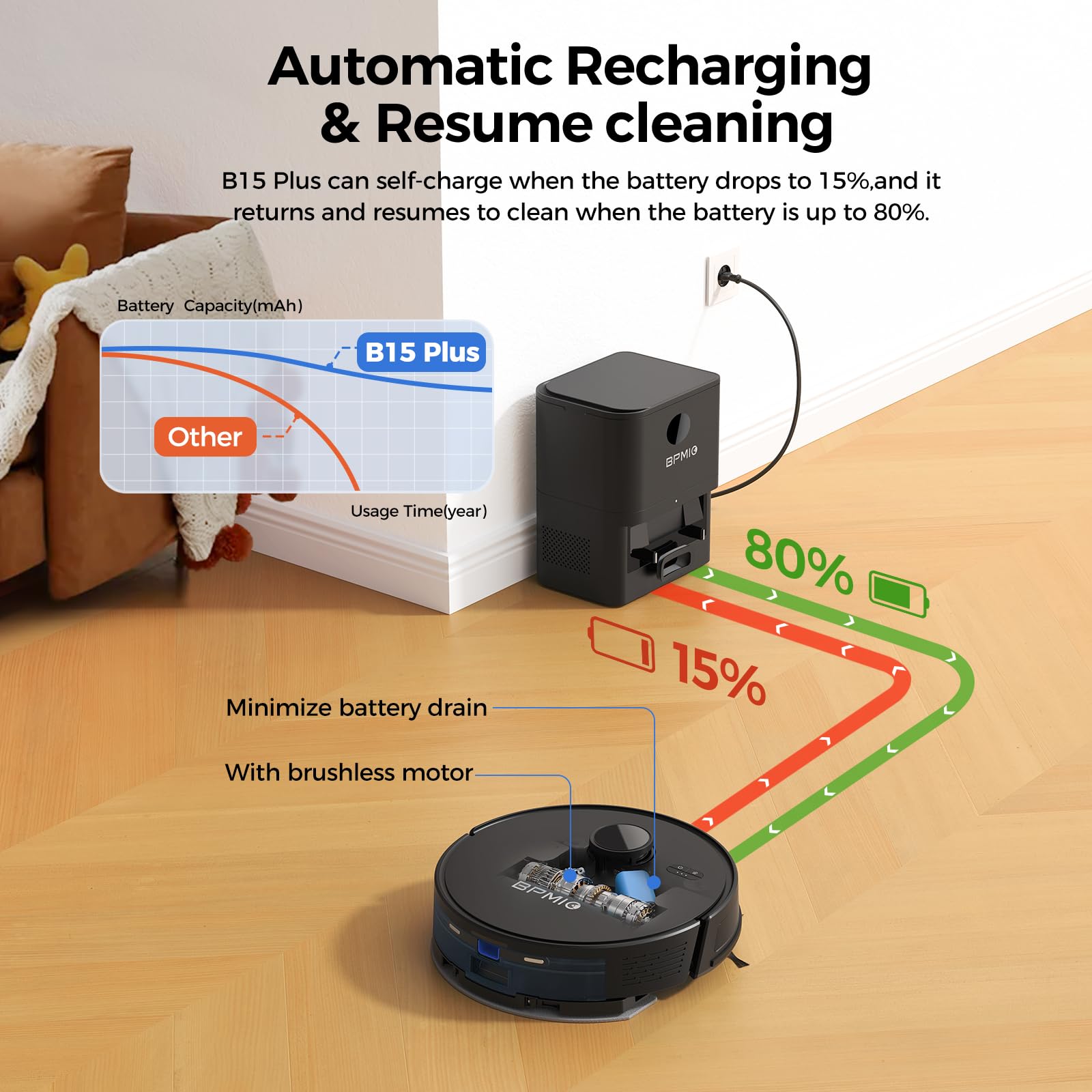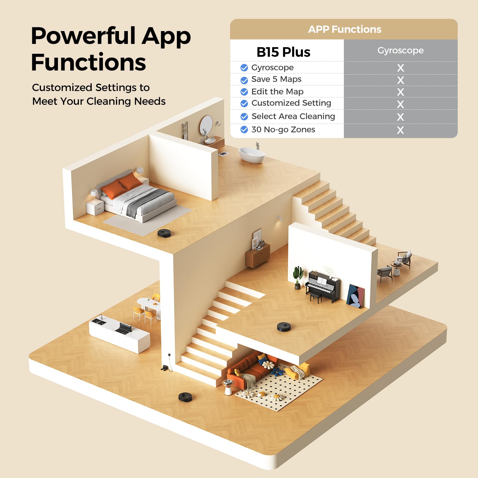 - 【Erweiterte LDS-LiDAR-Navigation】360°-Scannen und schnelle Kartierung zur Wiederherstellung des Haustyps, intelligente Planung von Reinigungsrouten, Abdeckung des gesamten Hauses zur Reduzierung von Auslassungen. Auch mit einem vollständigen Satz von Hindernisvermeidungssensoren ausgestattet, schützen Sie Wände und Möbel vor Beschädigung und vermeiden Sie, dass der Saugroboter stecken bleibt oder die Treppe hinunterfällt. Mit dem B15 Staubsaugerroboter müssen Sie sich nicht mehr um die Reinigung kümmern.
