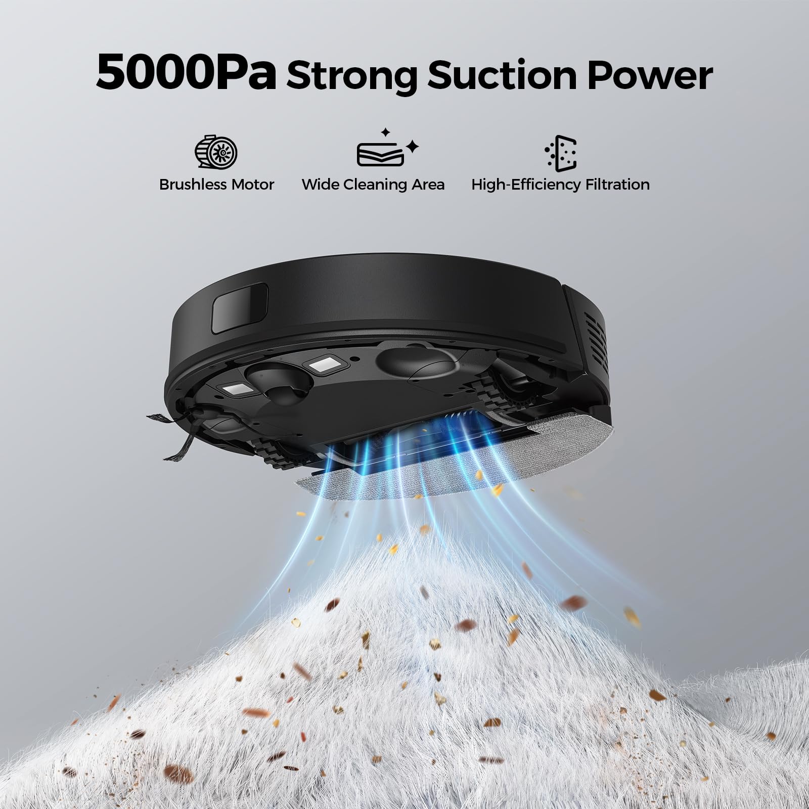 - 【5000Pa Starke Saugkraft】Der B15 Staubsaugerroboter ist mit einem japanischen BIDC-Motor, einem bürstenlosen Hochgeschwindigkeitsmotor ausgestattet und bietet 4 einstellbare 5000Pa Super-Saugkraft, um Staub in Ritzen, Ecken und Kanten sowie Schmutz auf Teppichen wegzufegen. Wenn ein Teppich erkannt wird, erhöht er automatisch die Saugleistung auf das Maximum für eine gründlichere Reinigung. Der B15 Saugroboter mit Wischfunktion eignet sich für viele Oberflächen, Hartböden, Holzböden, Teppichböden, etc.