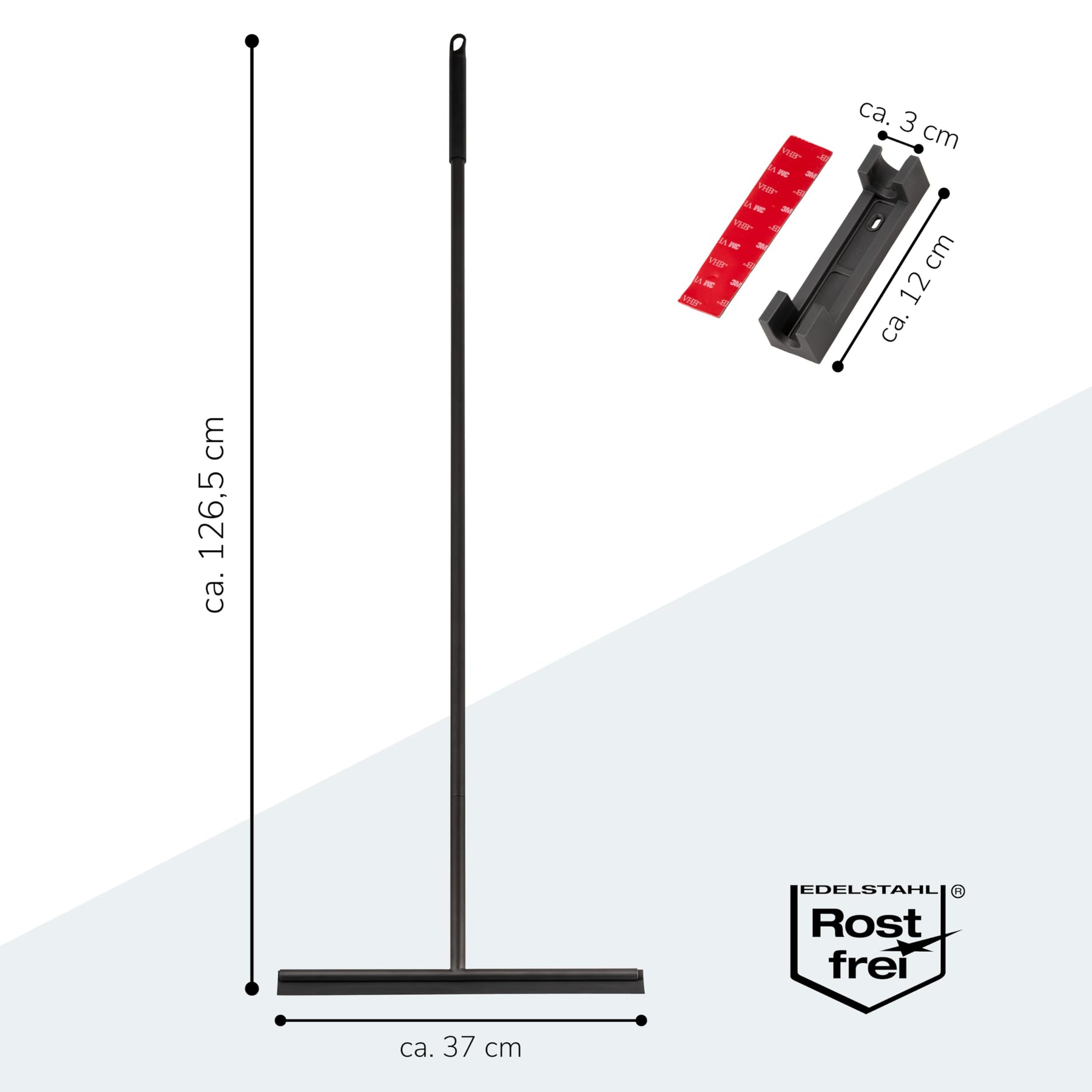 - SICHERHEIT - in dem unauffälligen Wandhalter zum Kleben oder wahlweise Bohren ist der lange Stiel ideal eingehakt und der Abzieher immer sicher platziert - keine Stolperfalle mehr!
