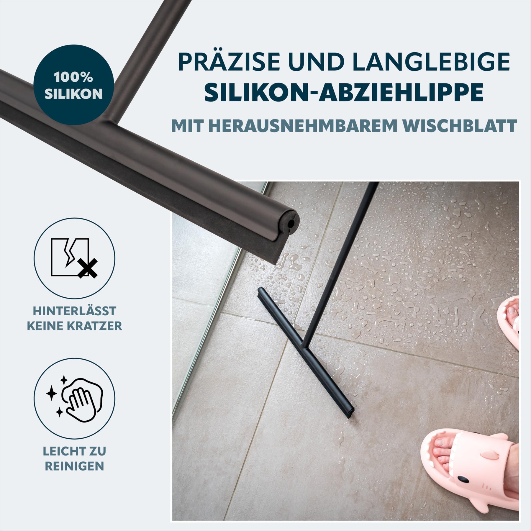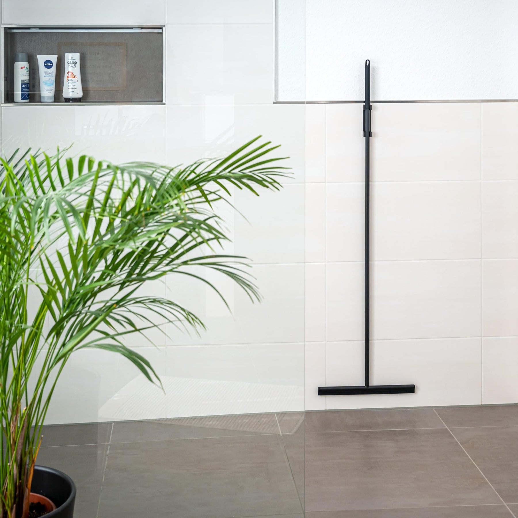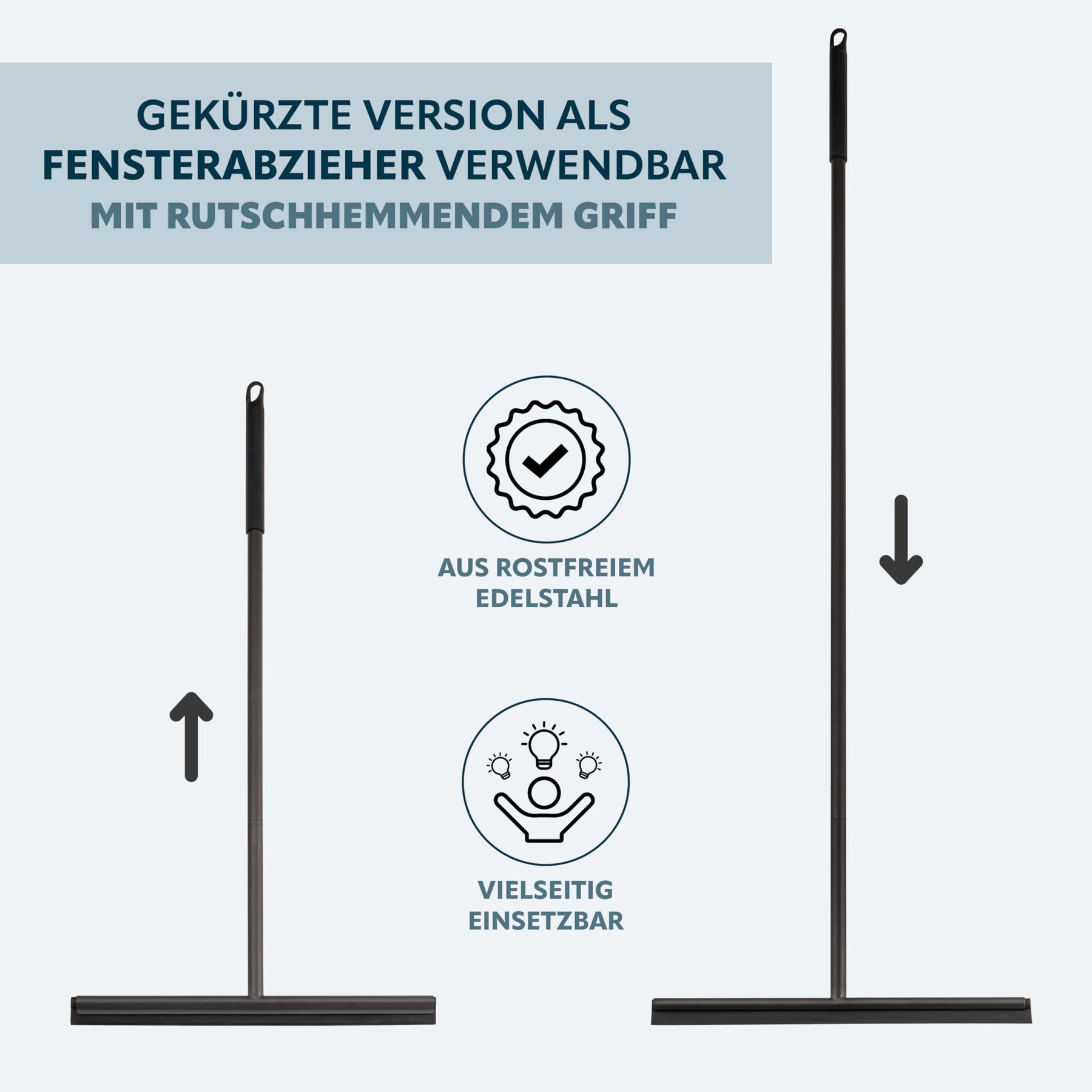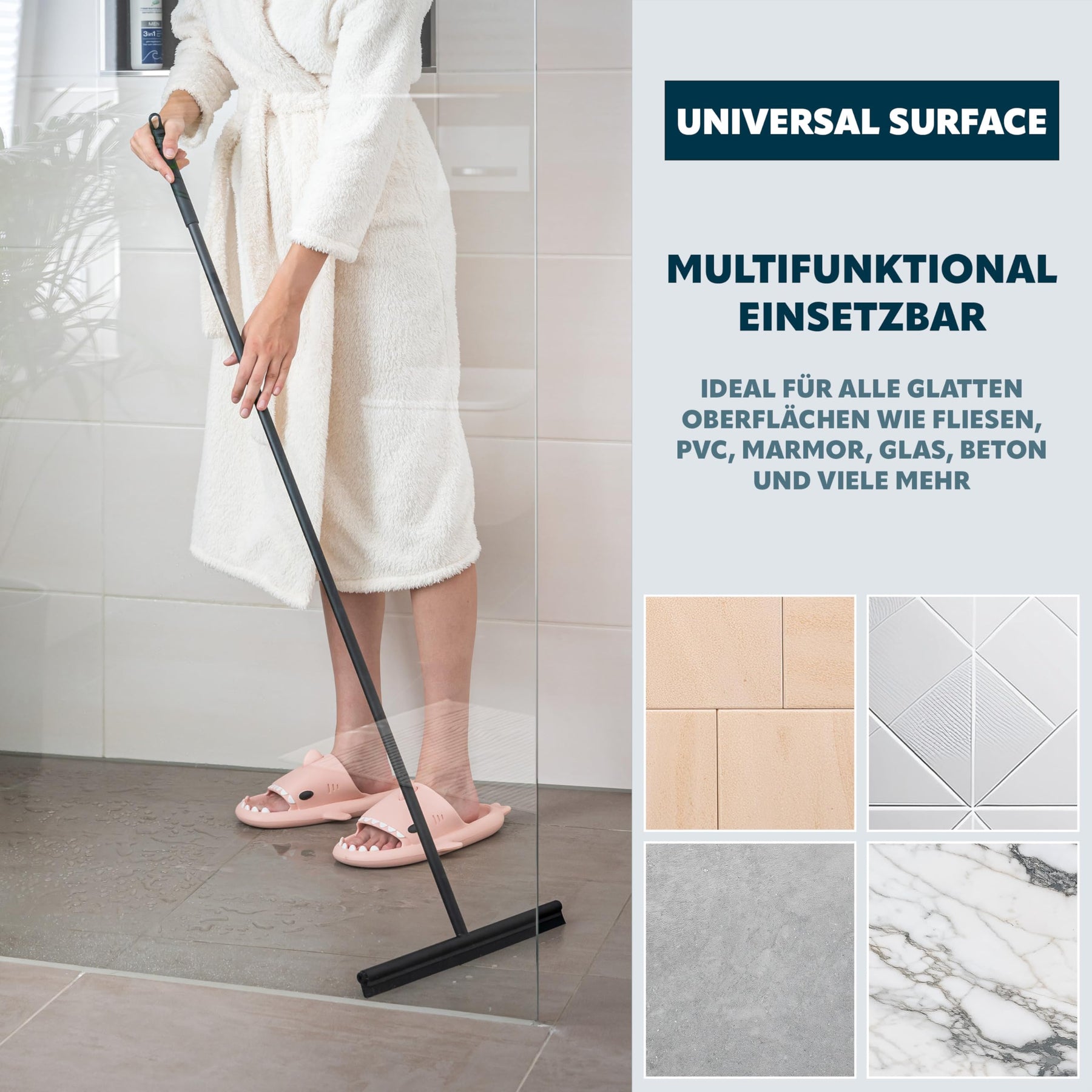 - DIREKT EINSATZBEREIT - für alle glatten Flächen; die kleine Überschwemmung nach der Dusche, dem Bad oder vor dem Pool ist schnell und elegant beseitigt. Verkürzt auch als Fensterwischer nutzbar.