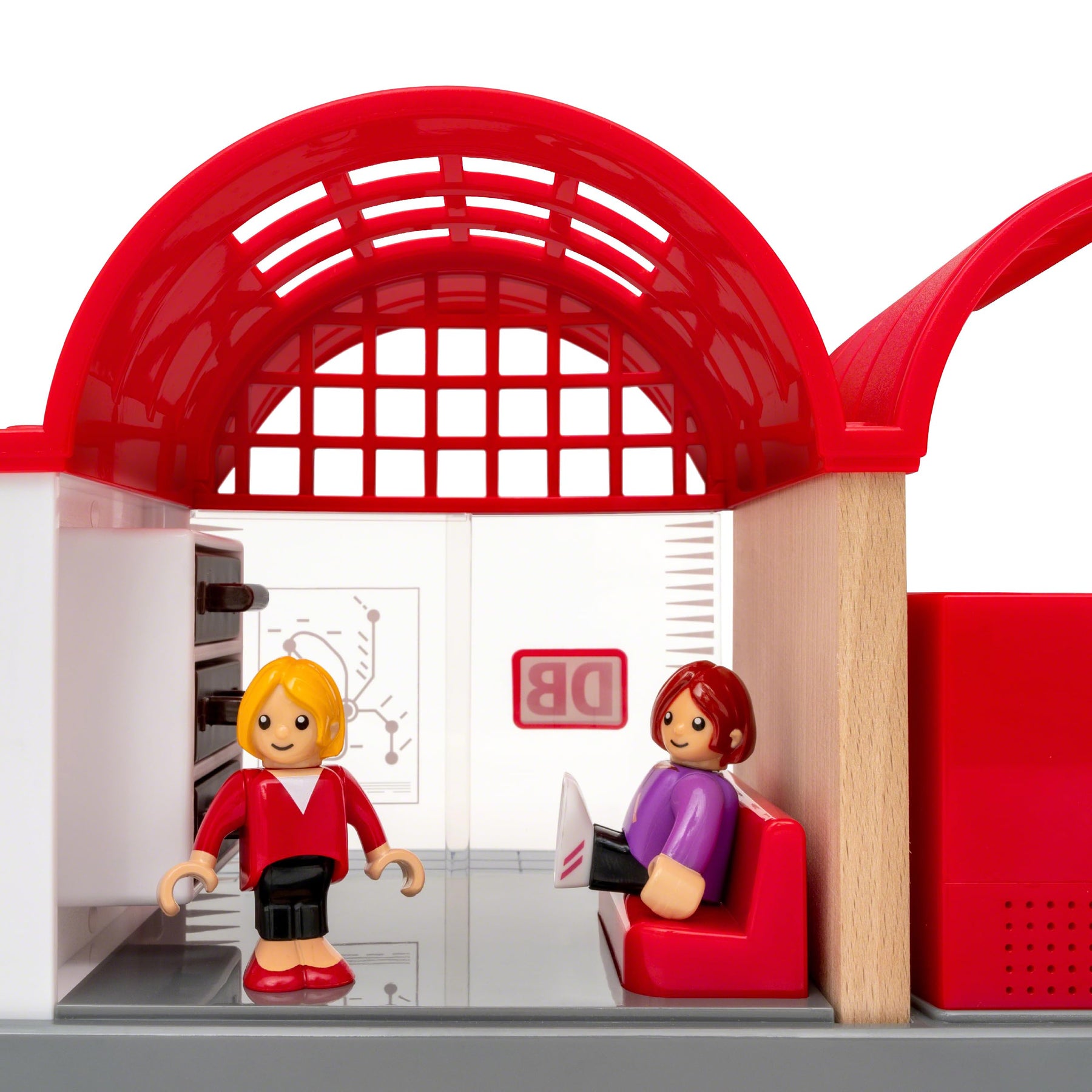 • Erstes offizielles Deutsche Bahn-Spielset von BRIO mit großem ICE, Bahnhof mit Ticket-Automat und DB Info-Schalter, Bahnübergang, Bus und tollem Zubehör