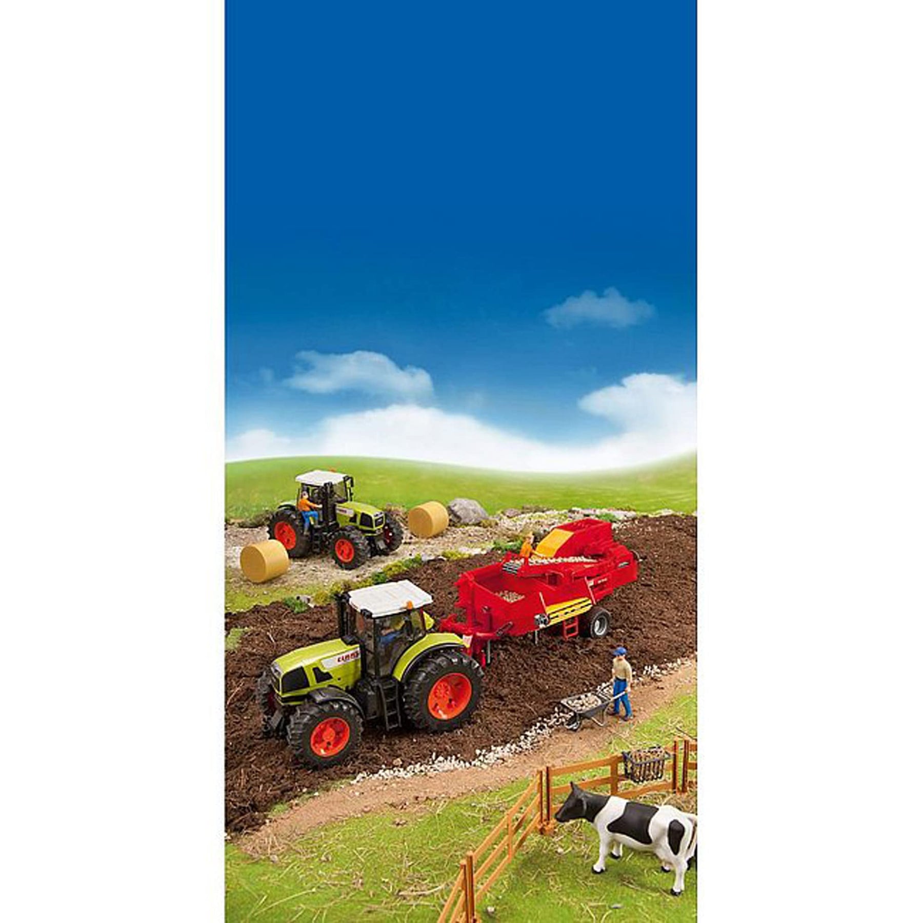 Der Grimme Kartoffelvollernter SE 75-30 aus dem Hause bruder ist seinem Original detailgetreu nachempfunden und im Maßstab 1:16 gefertigt. Einen sicheren Stand erhält der Kartoffelernter durch einen ausklappbaren Stützfuss. Kartoffelimitate, die im Lieferumfang enthalten sind, werden über das Reinigungs- und Verleseband durch Betätigen der Handkurbel in den Kartoffelbunker transportiert. Dieser ist zudem höhenverstellbar und das Austragsförderband ausklappbar. Profilreifen runden das Bild ab. Für größeren Spielspaß kann der Grimme Kartoffelvollernter mit allen Traktoren der Profi-Serie kombiniert werden. Weitere Fahrzeuge und Zubehör aus dem bruder Sortiment finden Sie in unserem Marken Shop. Klicken Sie dazu auf den Markennamen bruder unterhalb des Produkttitels.