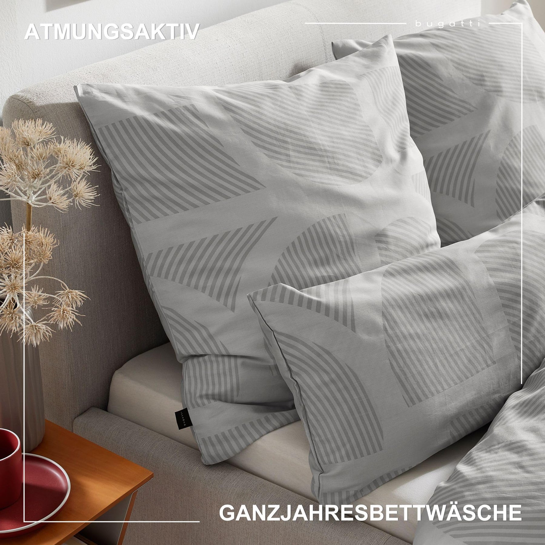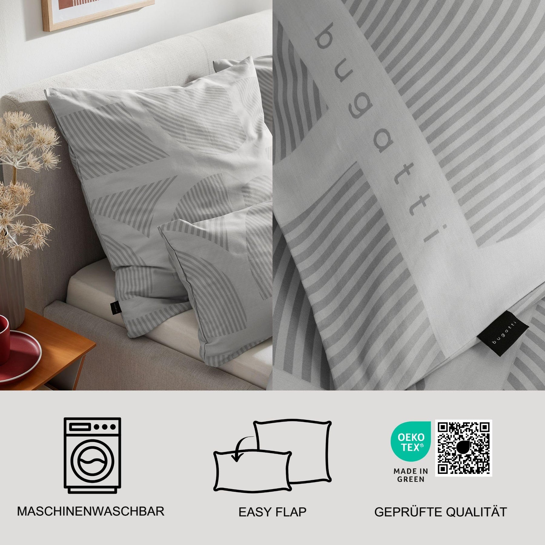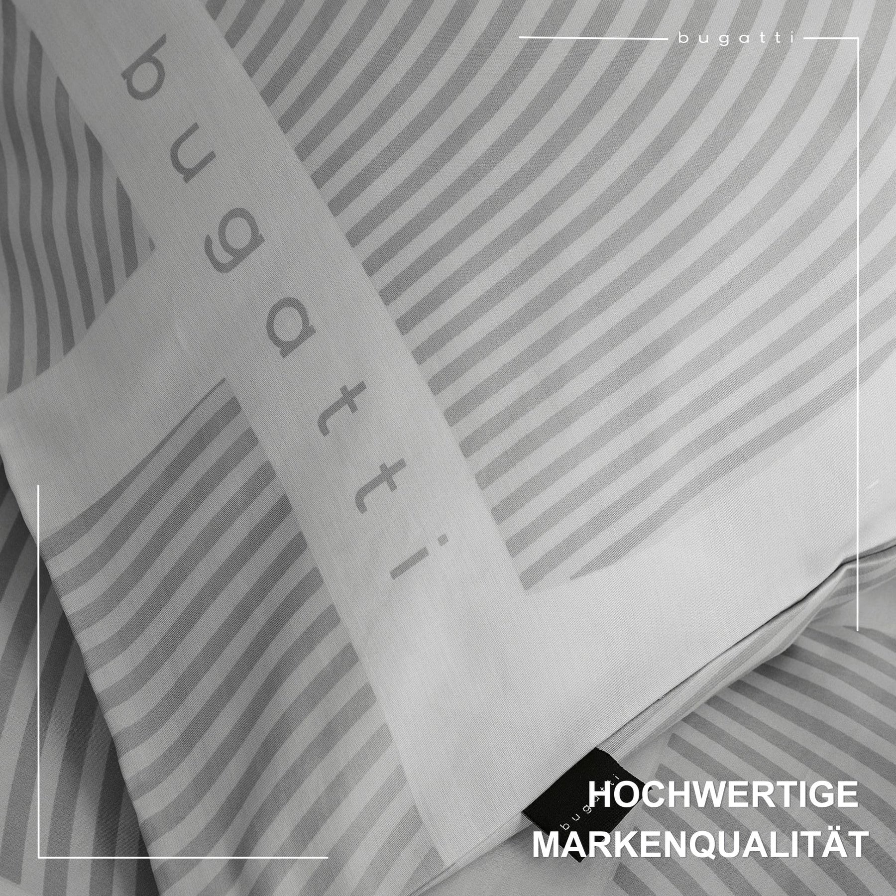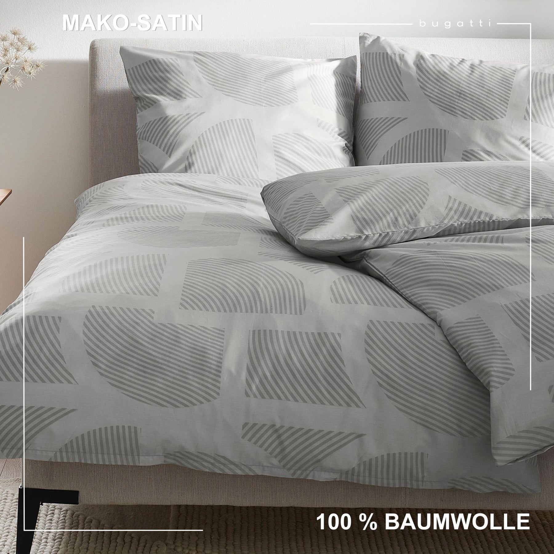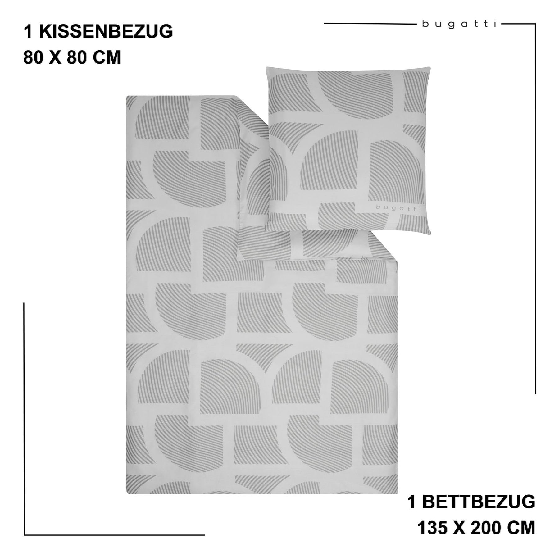 - BAUMWOLLBETTWÄSCHE: Schöner Mako Satin Bettbezug der Marke bugatti aus 100 % reiner Baumwolle mit abstrakten Muster in hellgrau 2 tlg. 1x Bettbezug normale Größe 135 x 200 cm + Kissen 80x80 cm
