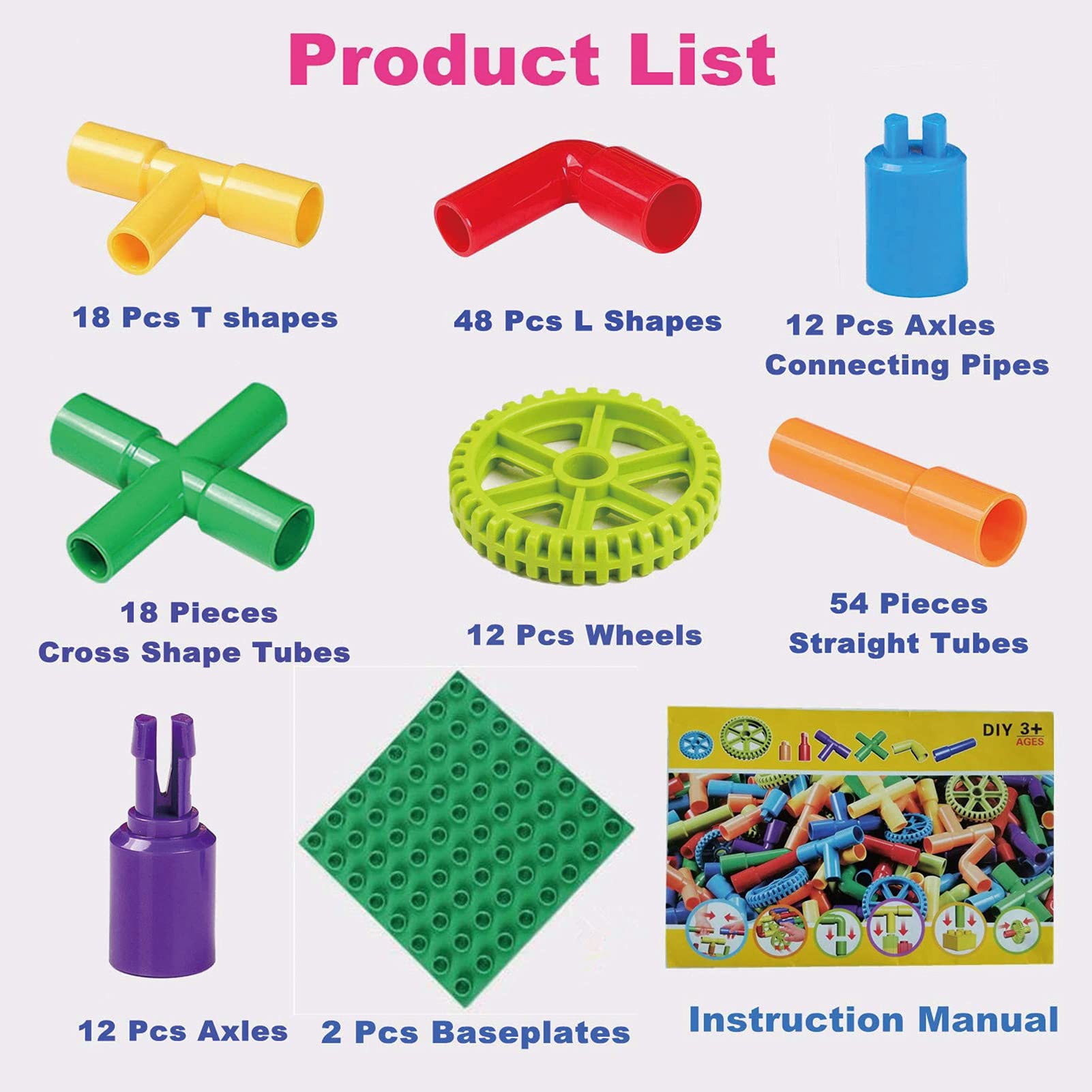 • STEM-Lernkits: Die 188-teiligen Rohrrohrspielzeuge enthalten 8 Arten von ineinandergreifenden Rohren, Rädern und Grundplatten. Erstellen Sie einfach Rechtecke oder andere geometrische Formen und verbessern Sie die Hand-Auge-Koordination, Farberkennung, Anpassung, kognitiven Fähigkeiten, Kreativität und Vorstellungskraft von Kindern
