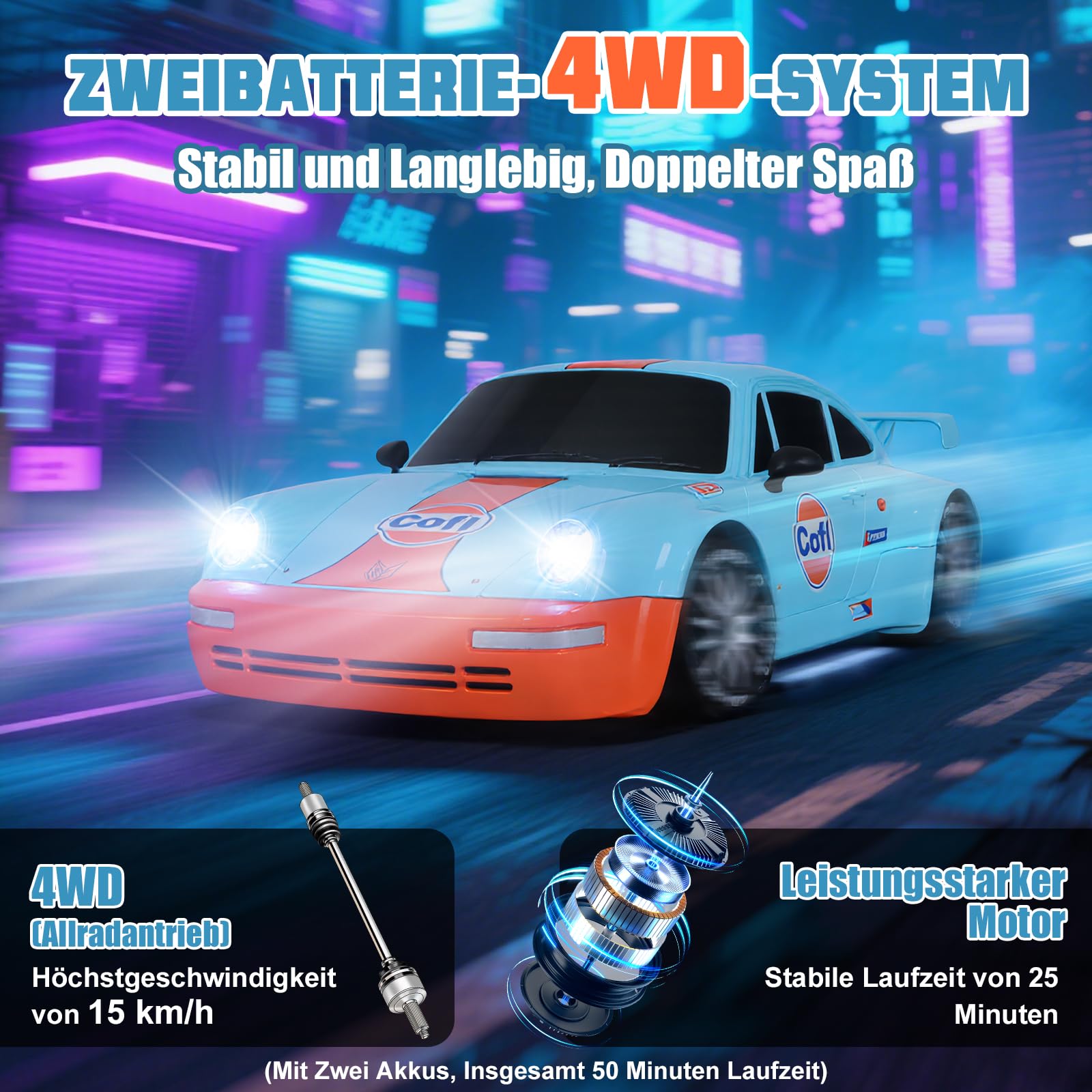 - 🏎️【Allradantrieb mit Doppelbatterie】Dieses drift auto ferngesteuert verfügt über ein allradantrieb-doppelbatteriesystem, proportionale drosselklappensteuerung vorne und hinten und einen leistungsstarken motor für ein fantastisches rennerlebnis. Dieses RC drift car ist außerdem mit zwei 500-mAh-Akkus ausgestattet, die Ihnen bis zu 50 minuten hochgeschwindigkeitserlebnis bieten. Es ist stabil und langlebig und sorgt für doppelten spaß – genießen sie den nervenkitzel des RC drift car!