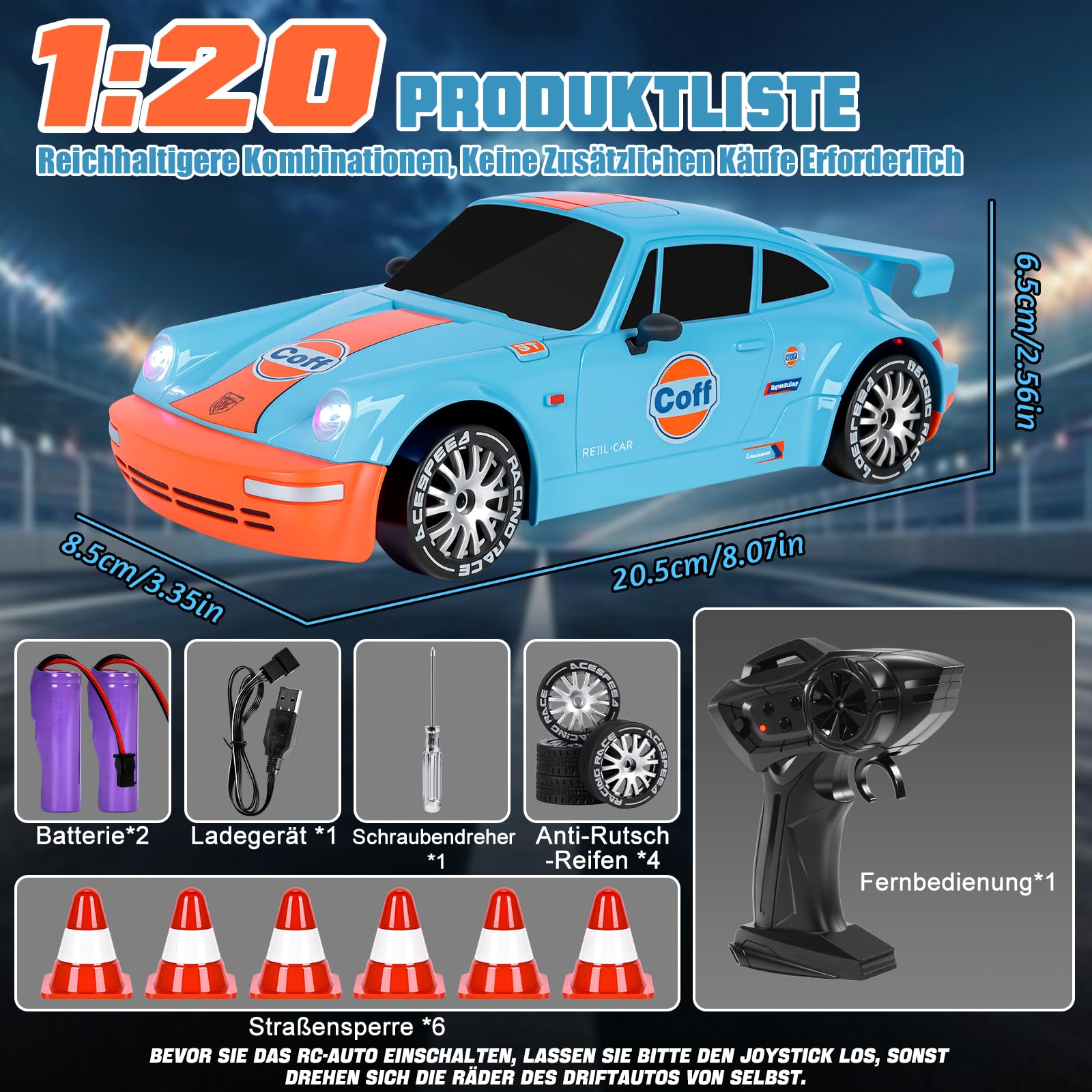 - 🚨【Cooles Autolicht-Design】Dieses RC drift car ist ein modell im maßstab 1:20. Die simulationshülle besteht aus stoß- und sturzsicherem PVC. Zusätzlich zu den regulären LED-scheinwerfern und -rücklichtern verfügt die karosserie über unterbodenbeleuchtung für cooles fahren bei nacht. Die unterbodenbeleuchtung lässt sich ferngesteuert ausschalten, sodass sie das drift auto ferngesteuert auch im dunkeln leicht finden und so doppelte sicht und kontrolle genießen können!