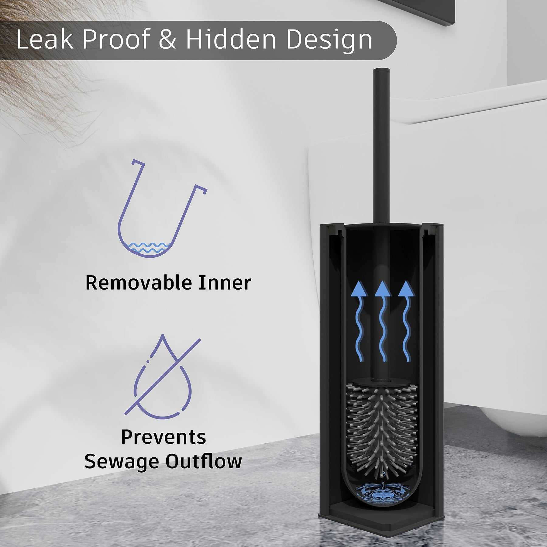 - Trennt Schmutz und Geruch: Der spritzwassergeschützte Deckel und der lange Griff der Toilettenbürste Schwarz schützen Ihre Hände vor Reinigungsmitteln und Schmutz, und nach der Benutzung verhindert die versiegelte Toilettenbürste und der Halter, dass Gerüche aus dem Bad entweichen.