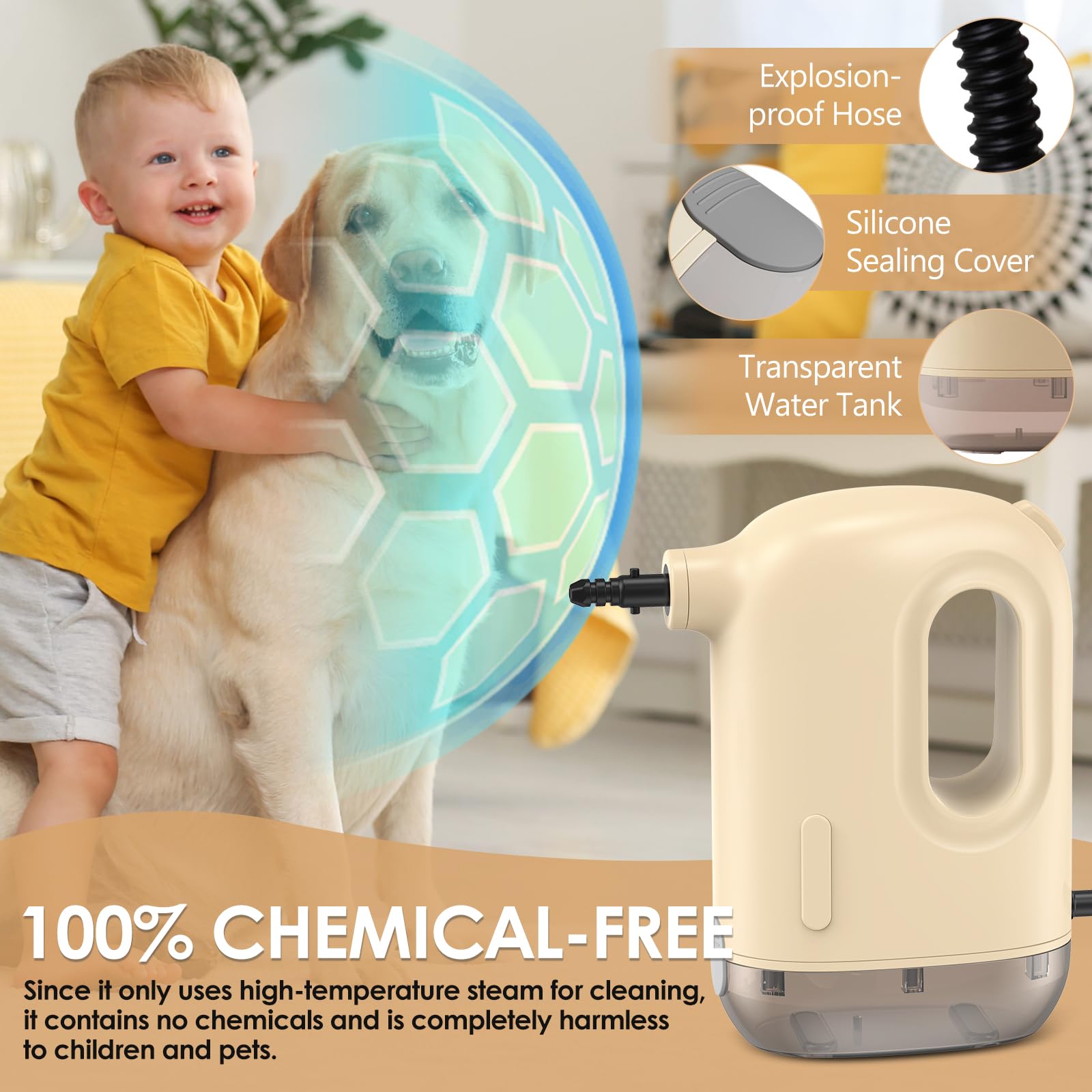 - 【Kompakt und tragbar】 Dieser leistungsstarke kleine Dampfreiniger ist sowohl effizient als auch tragbar. Er wiegt nur 1,2 kg und im Lieferumfang ist ein Verlängerungsrohr enthalten. Es ist nicht erforderlich, während der Reinigung häufig die Steckdosen zu wechseln. Sie können ihn problemlos zum Reinigen tragen, egal ob von einem Raum in einen anderen oder die Treppe rauf und runter.