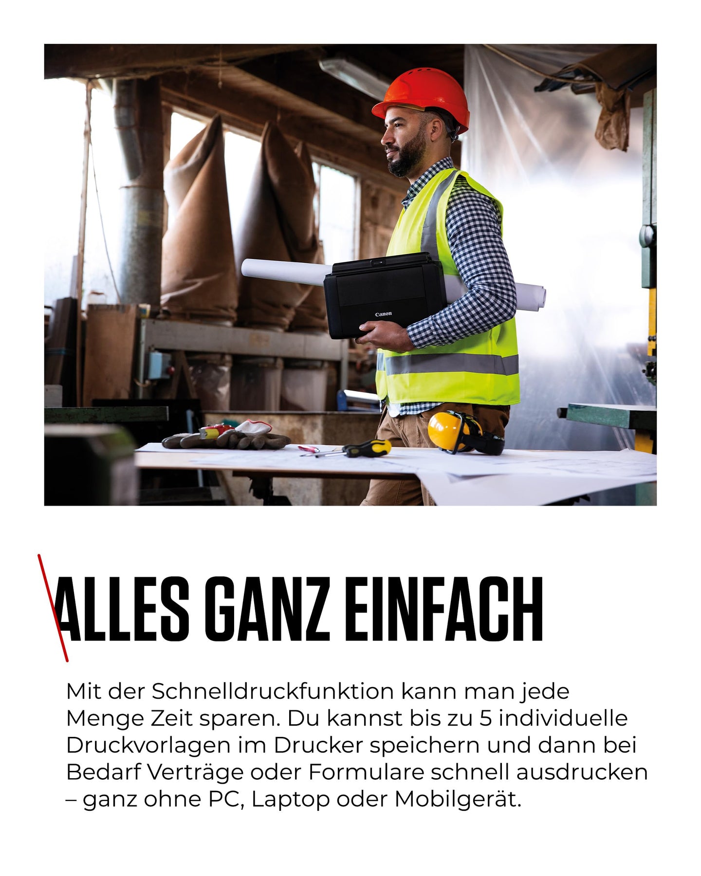 - MOBILER DRUCKER FÜR UNTERWEGS - Der PIXMA TR150 ist schlank, leicht und robust. Ideale Voraussetzungen für das mobile Büro. Alle Kabel und Verbindungen befinden sich auf einer Seite des Druckers, damit er platzsparend platziert werden kann. Zuverlässiges Drucken für Randlosfotos und Dokumente bis zum Format A4.Mit einer Druckgeschwindigkeit von 9 ISO-Seiten/Minute in S/W und 5,5 ISO-Seiten/Minute in Farbe arbeitet der Drucker leise und schnell