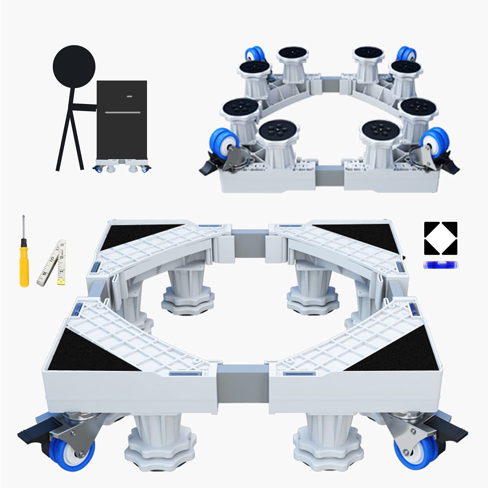 - Superstark und stabil: Im Vergleich zu anderen Sockeln haben wir 4 dicke Platten (jede Größe 7,9 Zoll), um eine große Plattform zu bauen. Wir haben auch 8 dicke verstellbare Füße und 4 Doppelrollen, um die Basis zu stützen. Die maximale Tragfähigkeit beträgt bis zu 660 lb (300 kg). Sie können eine schwere Waschmaschine oder einen Kühlschrank darauf stellen.