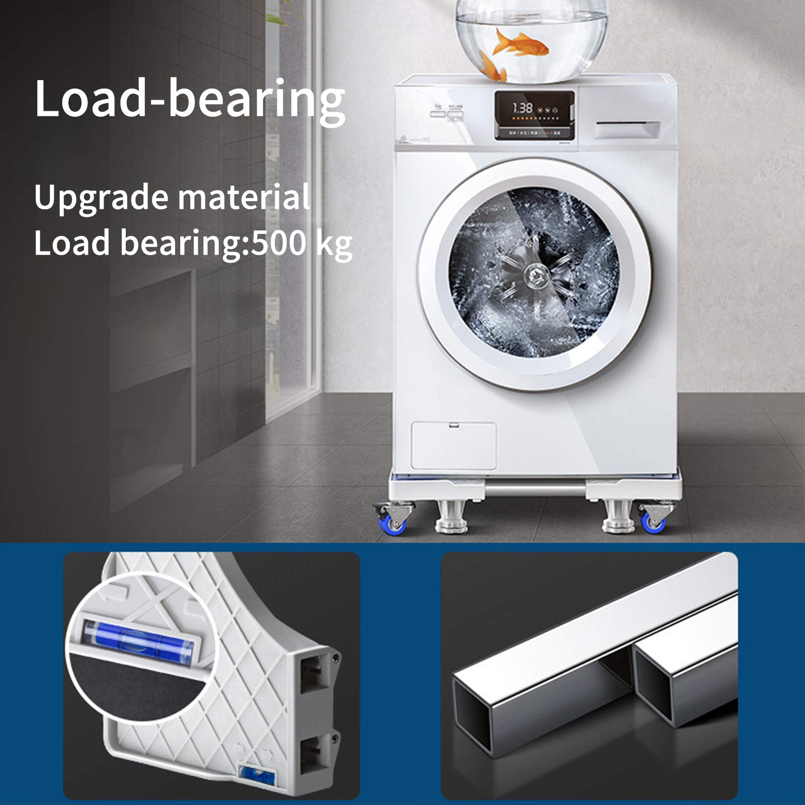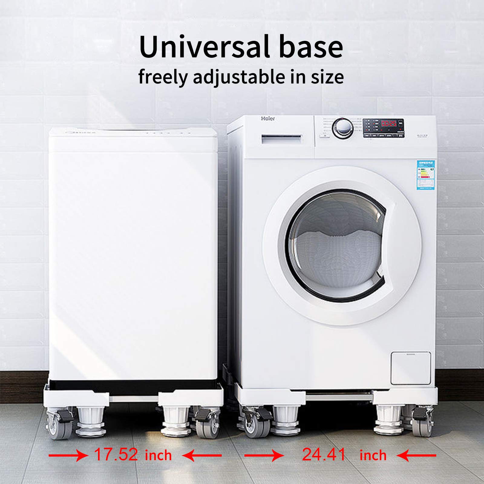 - Universelle mobile Basis: Wir bieten 4 doppelte 360°-Lenkrollen (Durchmesser 1,77 Zoll) mit Bremsen für den Unterlegscheibenständer an. Schalten Sie die Bremse ein, um Ihr Gerät an einer anderen Stelle zu schieben oder zu ziehen, um den Boden zu reinigen und Feuchtigkeit zu vermeiden. Der Sockel hebt Ihr Gerät 4-5 Zoll über den Boden. Sie können die Höhe nach Ihren Bedürfnissen anpassen.