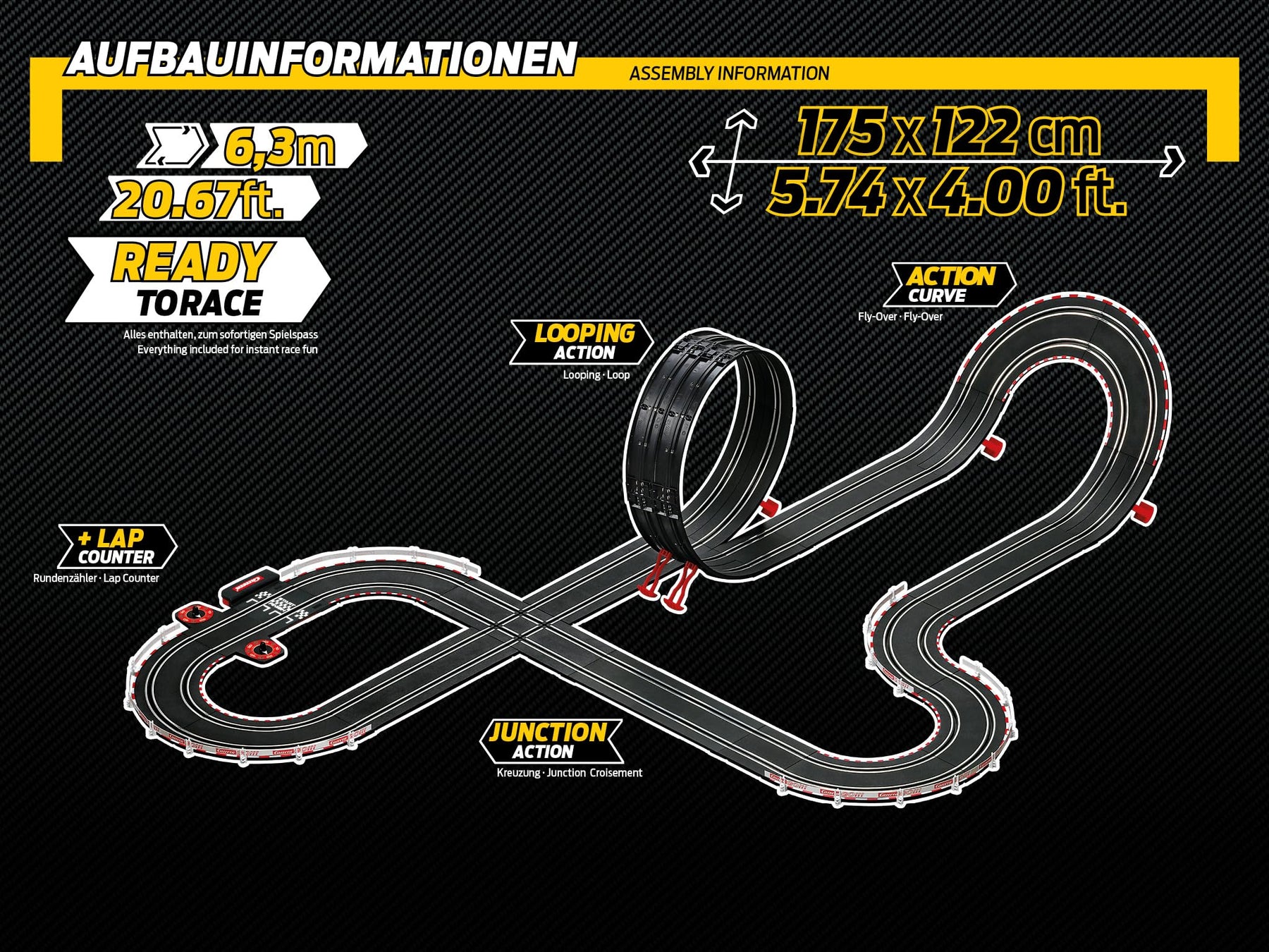 • MIT RUNDENZÄHLER - Die Action-Rennbahn enthält einen Rundenzähler, der es den Spielern ermöglicht, ihre Rundenzeiten zu überwachen und ihren Fortschritt zu verfolgen. Dies sorgt für ein noch realistischeres Renngefühl und eine weitere Ebene der Strategie beim Rennfahren.