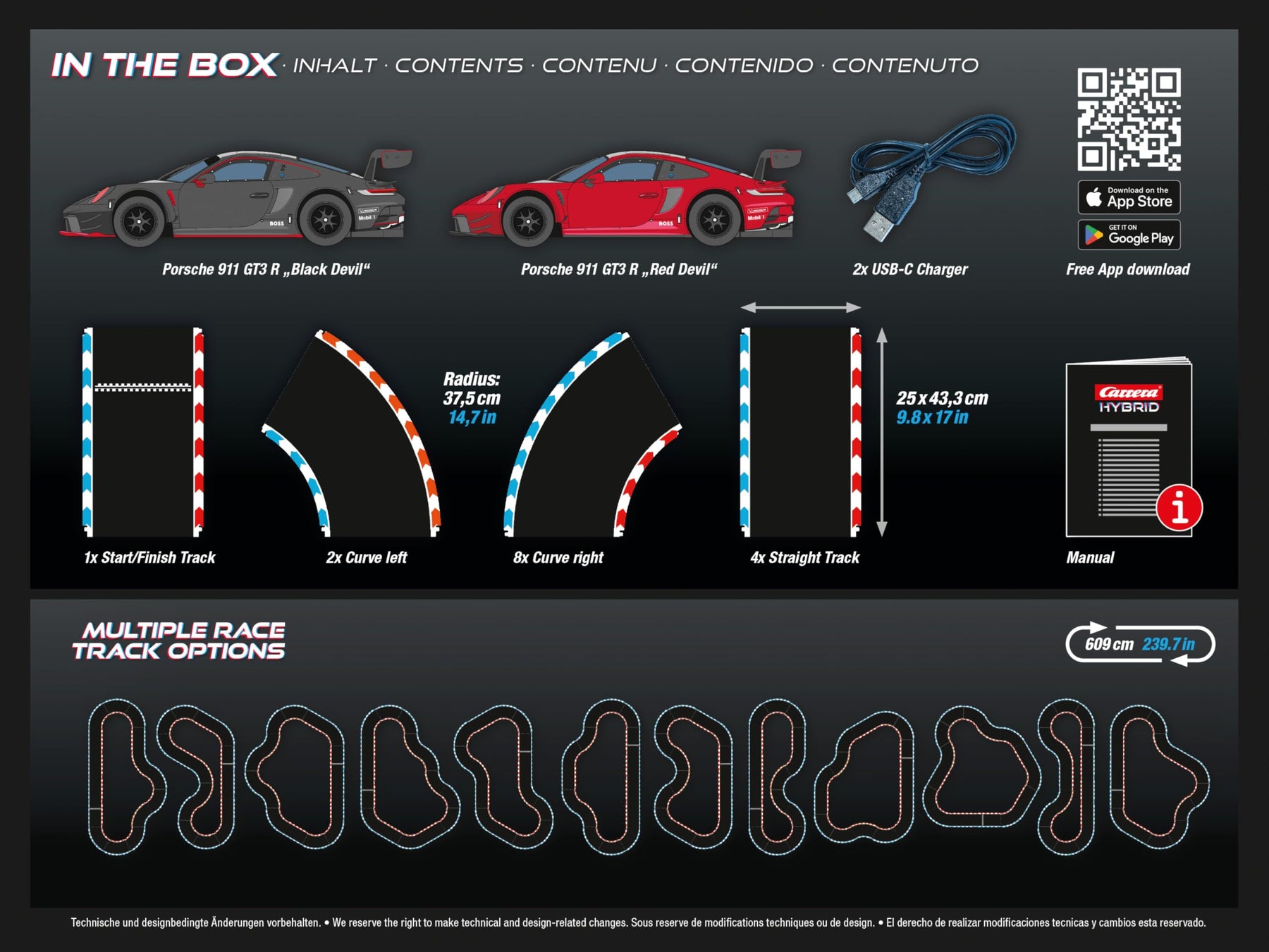 Carrera Hybrid garantiert Rennspaß für bis zu 30 Fahrer gleichzeitig ~ Extra breite Schienen im Maßstab 1:50 ~ Originalgetreue Fahrzeuge im Maßstab 1:50 mit Front- und Rücklicht ~ Steuerung mittels kostenloser App für Smartphone oder Tablet. ~ Fulllspeed Spurwechseln und Überholen an jeder Stelle der Strecke ~ Individuelle Einstellungen von Geschwindigkeit, Reifengrip und Bremswirkung und vielen weiteren Parametern für jedes einzelne Fahrzeug ~ Original getreues Motorengeräusch in der App ~ Fahrzeuge können selbst zurück auf die Fahrbahn fahren, wenn sie von der Strecke abkommen ~ Freischaltung von weiteren Schwierigkeitsleveln ensprechend dem Gaming Gedanken.