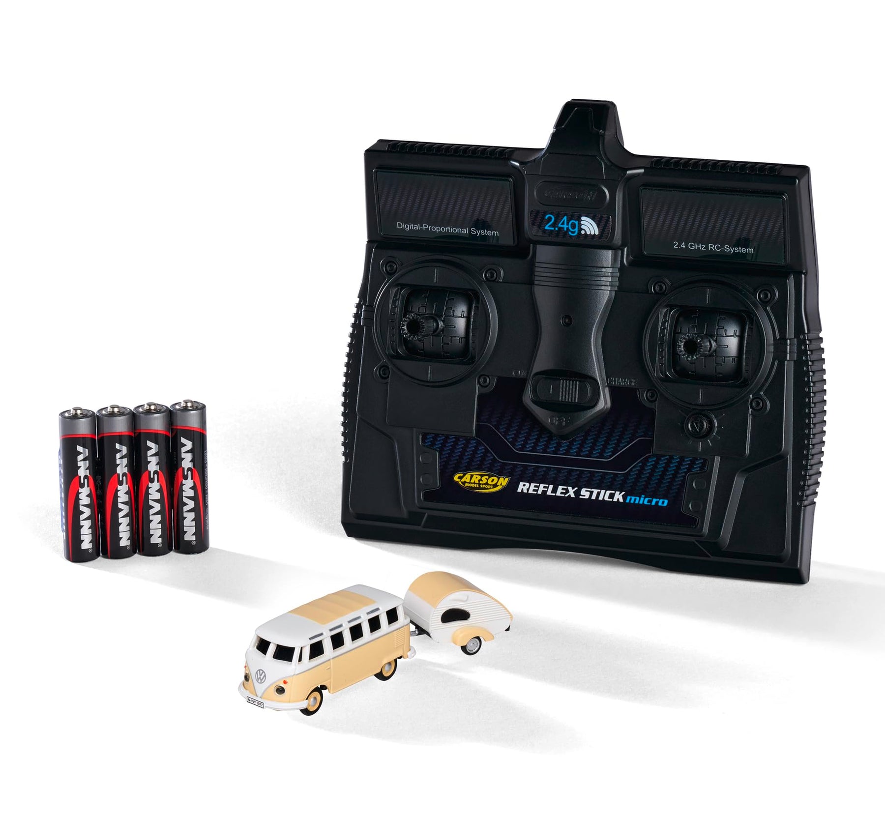 Eintauchen in eine Welt der Nostalgie und Freiheit… Mit unserem brandneuen ferngesteuerten VW T1 SambaBus mit Wohnwagen im Maßstab 1:87 ist dies möglich. Das fahrfertige Modell im Set beinhaltet alles, was Sie brauchen, um sofort loszulegen. Die 2,4 GHz Fernsteuerung mit Ladeanschluss ermöglicht eine einfache Handhabung und schnelle Aufladung und der leistungsstarke 3,7V/75mAh Li-Ion Akku sorgt für langanhaltenden Fahrspaß. Durch sein detailgetreues Design und die nostalgische Artwork wird das T1-Modell zu einem einzigartigen Sammlerstück. Das Set Inklusive Aufbewahrungsvitrine und 4 AAA-Batterien, mit Wohnanhänger, Fernsteuerung und Akku komplettiert das Abenteuer perfekt.